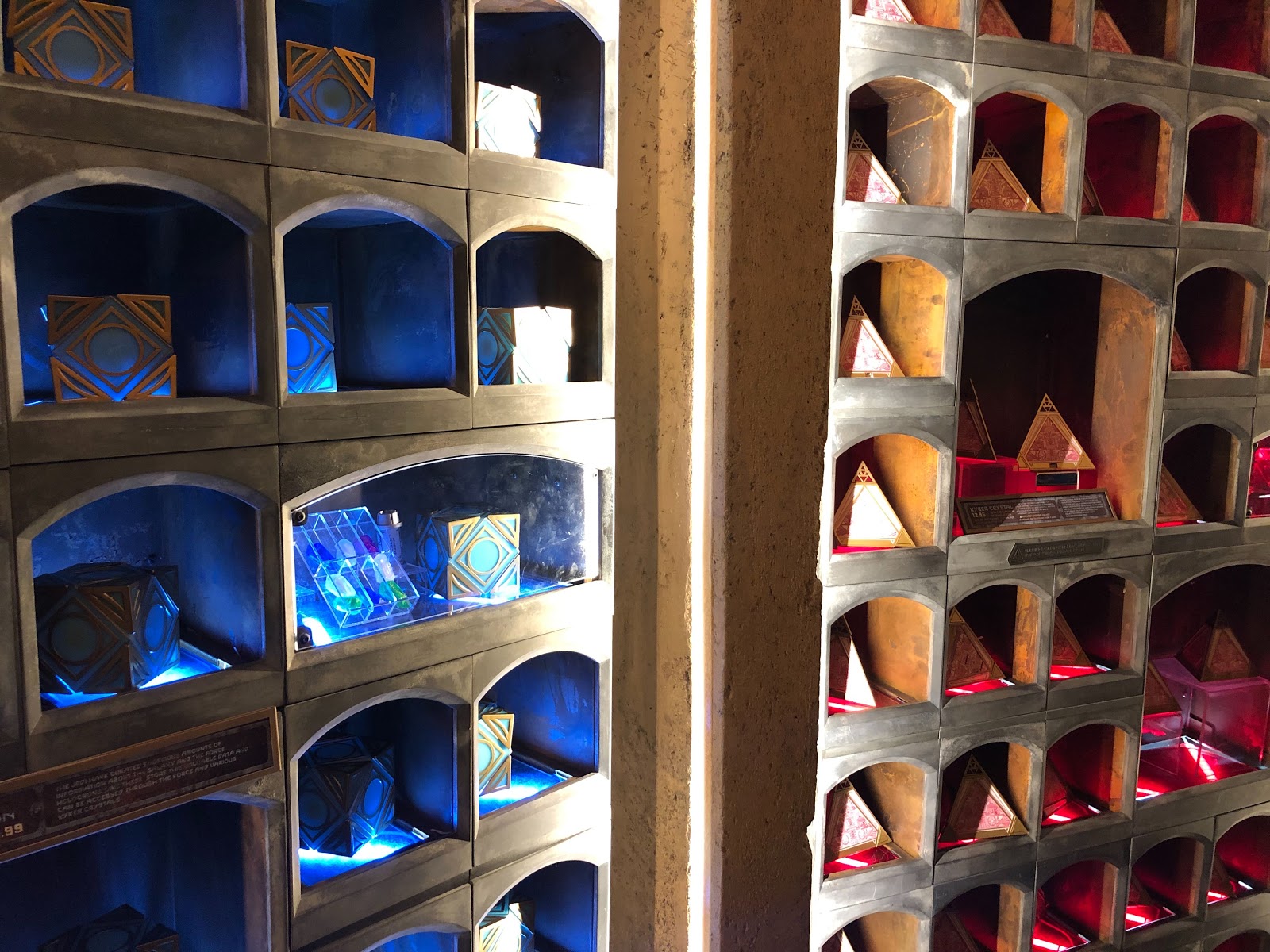 As of yesterday, guests were unable to purchase individual Kyber Crystals at Dok-Ondar’s (though Holocrons and buildable lightsabers at Savi’s Workshop still came with them), many of the legacy lightsabers, the Sabacc deck at Toydarian Toymaker, personality chips and carrying backpacks at Droid Depot, the Rancor Teeth beer flight ceramic serving tray at Oga’s Cantina, the highly sought-after Batuuan Spira gift card, and my favorite Batuu refrigerator magnet at The Jewels of Bith, among other items due to lack of supply.
