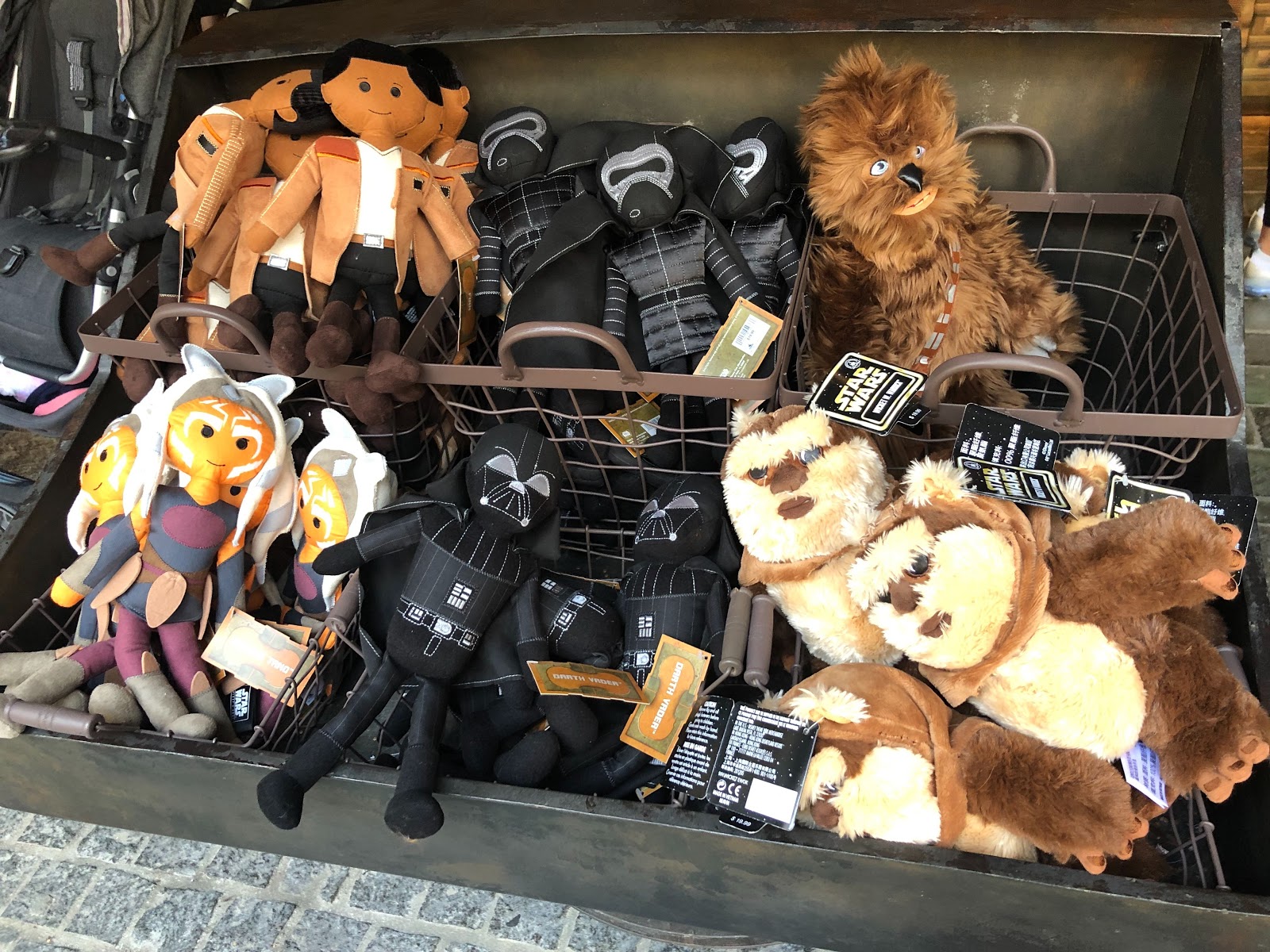 It was also jarring to see non-Galaxy’s Edge merchandise like plush Porgs, Chewbacca, and Wicket the Ewok (in the Marketplace’ Creature Stall and Toydarian Toymaker shops) being used to fill gaps where items were sold out. Hopefully this practice is only temporary until they are able to get these products back in stock.