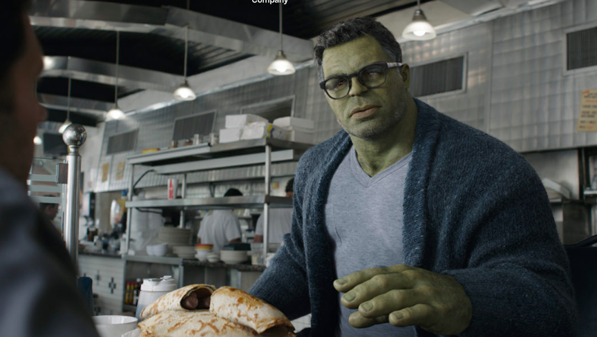 Then, we see an unfinished CGI Hulk jump into the burning building. After a beat, he jumps back out of the building with civilians in hand. He then explains to the officers how they should go about putting out the fire, combining the brawn and brain of the Hulk. He then takes a phone call and asks “Steve who?” before the screen cuts to black. This scene would fit in just before the scene in the diner where we first see the new and improved Hulk.
