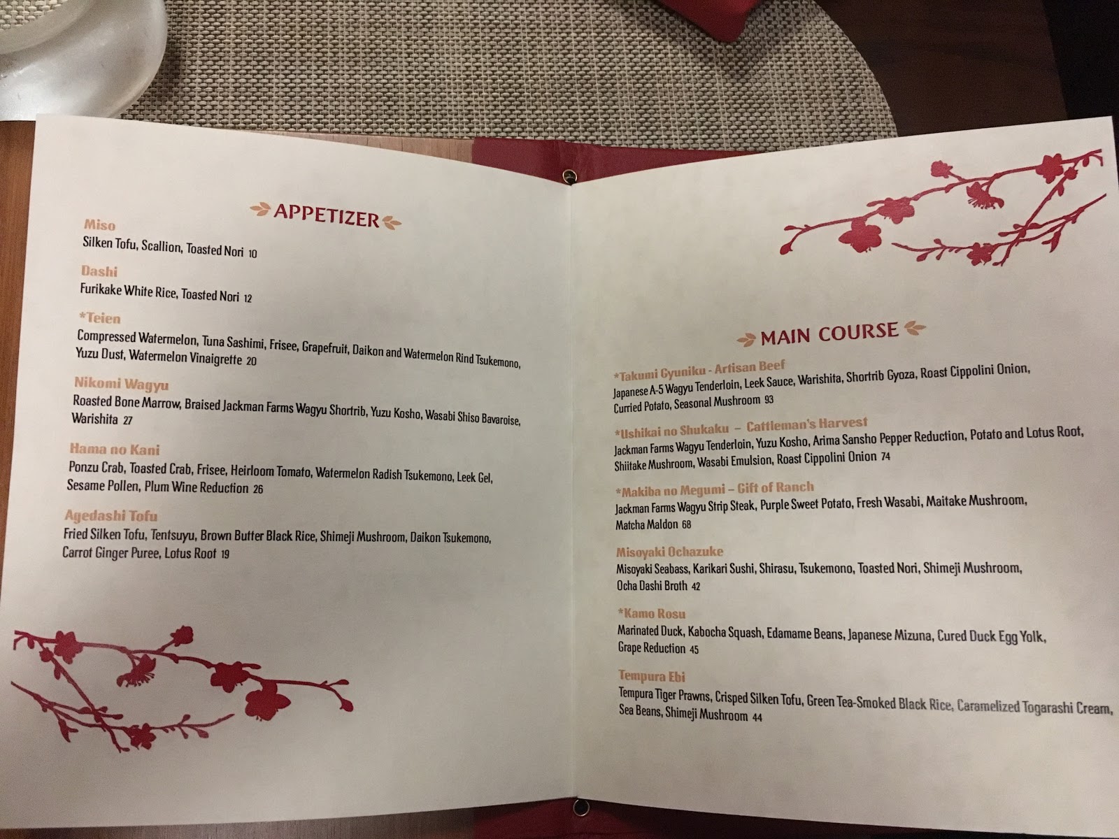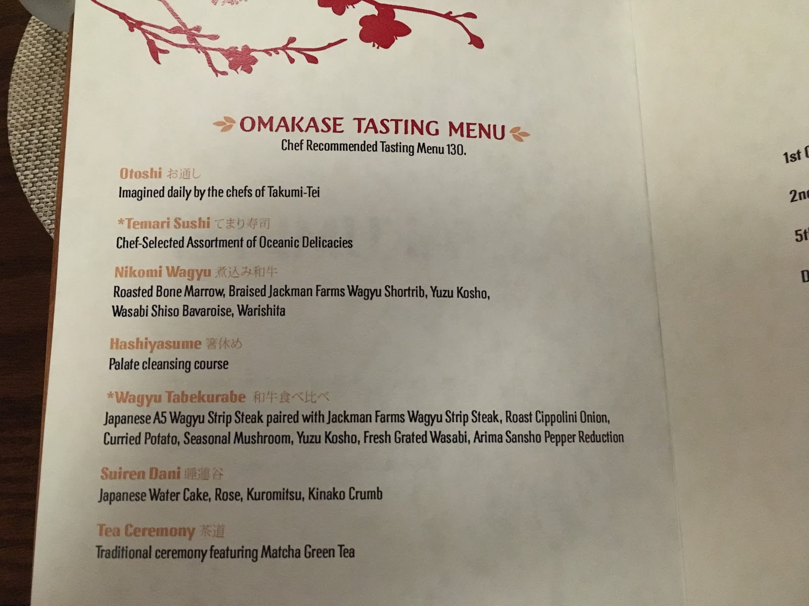 Next was the best part of the whole experience. The Takumi Gyunkiku or Artisan Beef consists of A-5 Wagyu Tenderloin, a shortrib Gyoza, onion, potato and mushroom and it is presented beautifully. All of the sides are delicious but the crown jewel is that Wagyu. It was the single most delicious thing I have ever eaten anywhere. It was cooked perfectly and just melts in your mouth. I almost wish I never tried it because it has probably ruined all other steak for me. I should mention, it’s also $93.