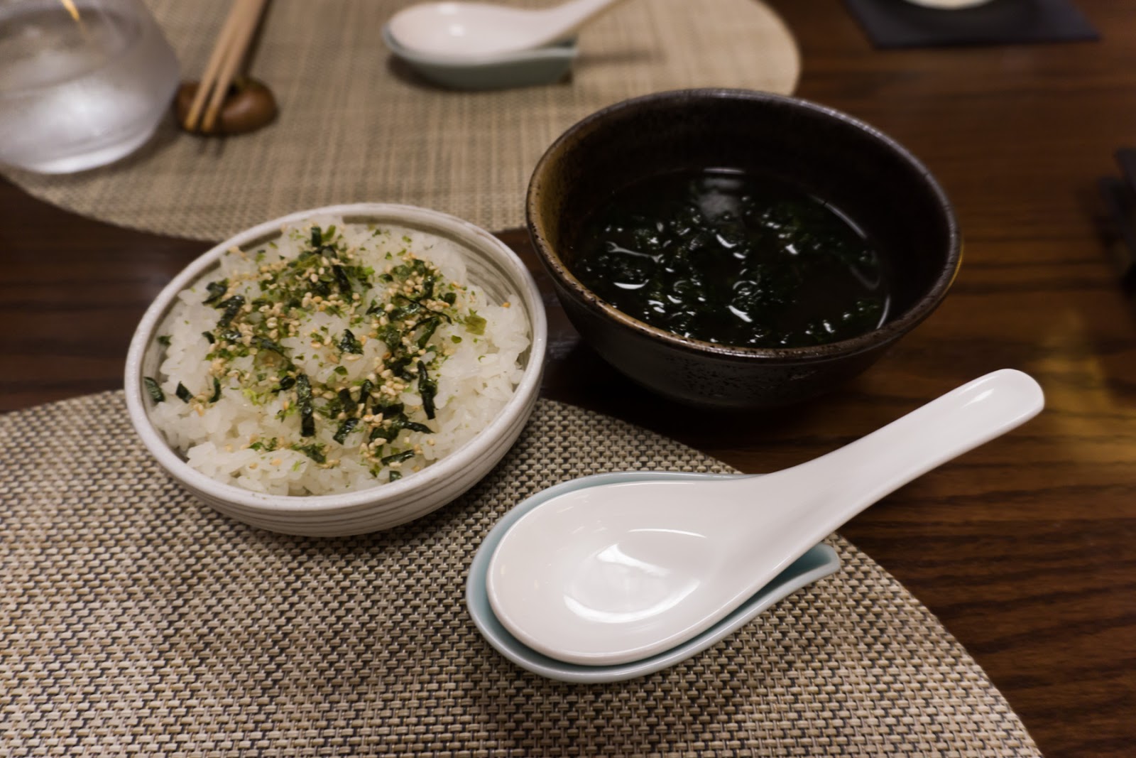 We were also brought a complimentary amuse-bouche consisting of two different types of mushrooms. If you enjoy mushrooms, you will like this small dish, however it was unclear if this specific dish would always be offered. We also tried the Dashi as our appetizer, which is a white rice with toasted seaweed served with a seaweed broth. This was a very interesting plate as the broth had a very ocean-like taste. However, just a touch of the broth paired with the rice was actually pretty good.