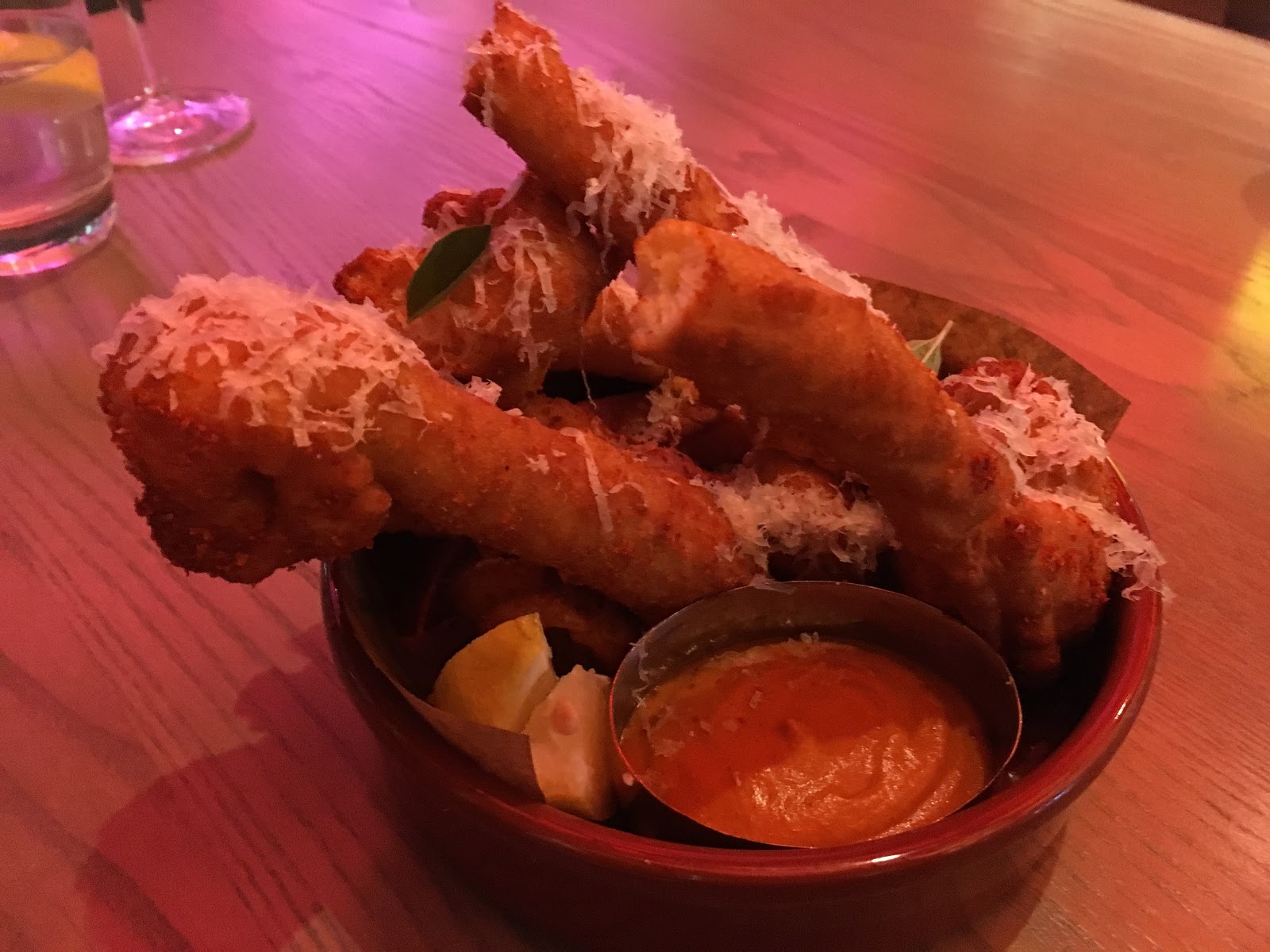 Now, onto the food. We started with a very unique appetizer in the Savory Churros. We thought we were crazy when we jokingly described the flavor as a Cheeto and were then surprised when our server said the same thing. I know that makes it sound unappetizing, but It’s actually pretty good. It was very different from anything else I’ve ever eaten that’s for sure.