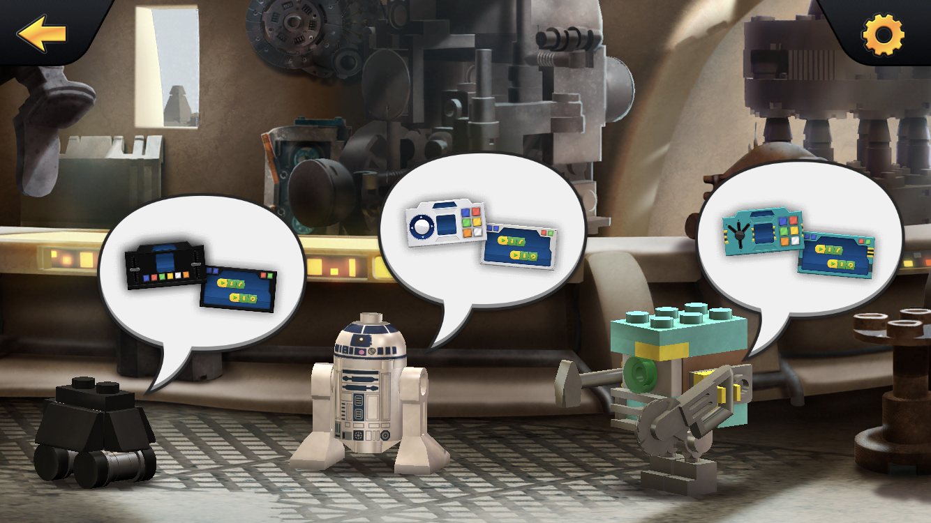 The LEGO BOOST app works perfectly for putting your hands at the controls of R2-D2, the Gonk Droid, and the Mouse Droid. You can stack commands and build a string of motions and functions, or simply steer each droid via a more straightforward remote control, all within the app. There are also a handful of specialized skills available such as unlocking a door, firing a projectile, and battle actions.