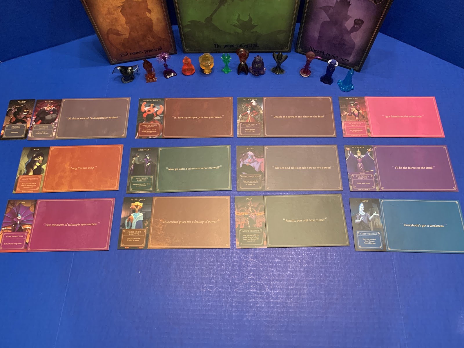 Like the second release, Disney Villainous: Evil to the Core, this release can be played as its own stand-alone game, but can also be treated as an expansion and played with the characters from the previous two games. The original release came with Maleficent, Ursula, Captain Hook, Jafar, the Red Queen, and Prince John. Evil to the Core added the Evil Queen, Dr. Facilier, and Hades. That means there are now twelve villains in all for players to choose from when you pick up all three games.