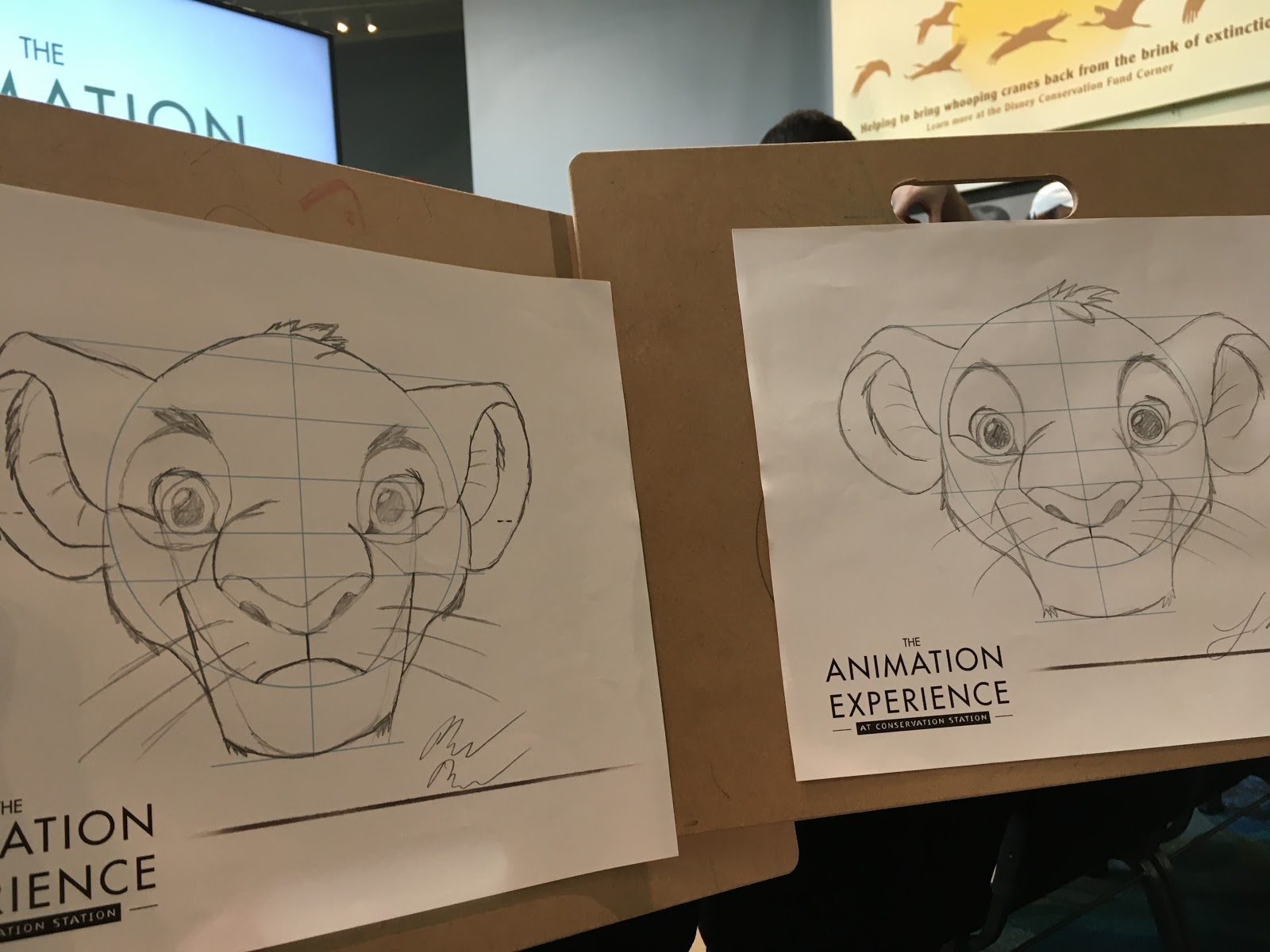 We then took the train over to Rafiki’s Planet Watch to try out the new Animation Experience at Conservation Station. This new experience shares how live animals have inspired many of Walt Disney Animation’s most iconic characters and allows guests the opportunity to learn to draw some of their favorite characters from Disney’s animated classic The Lion King. We drew young Simba. I’m not much of an artist, but I think I did ok.