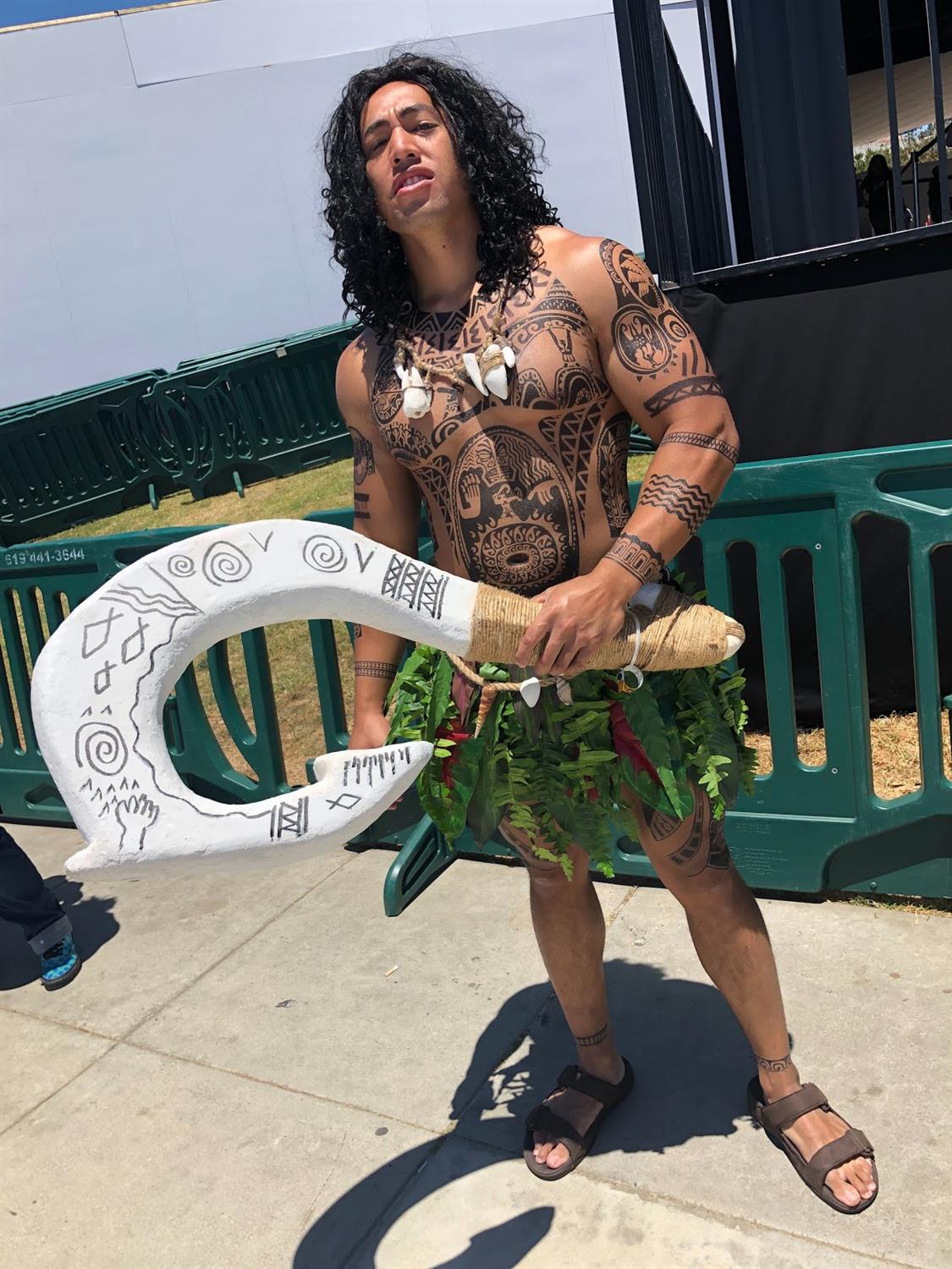 #7 - Maui - We saw this perfectly realized Polynesian demigod (voiced by Dwayne “The Rock” Johnson in Disney’s Moana) waiting in line for Indigo Ballroom. The most impressive part of this costume was definitely how accurate the tattoos were, down to the last detail.