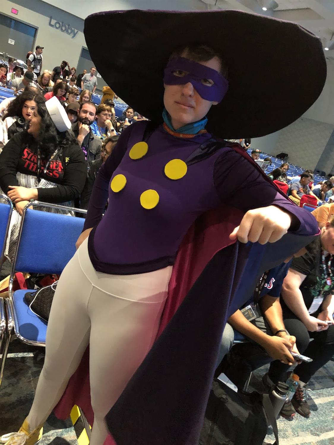 #6 - Darkwing Duck - She is the terror that flaps in the night! This dedicated fan made it into the front row for Disney Channel’s DuckTales panel on Friday morning, and there must have been trouble, because DW even got called up to the dais by the show’s cast and creators in congratulations on such an accurate ensemble.