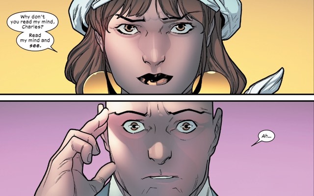 Seen in the image above, the issue starts with a conversation between Charles Xavier and Moira MacTaggert in Year One. It then jumps to Year Ten, where “House of X” was set. Here, we see Mystique returning from her mission seen in “House of X,” only to receive more demands from Xavier.
