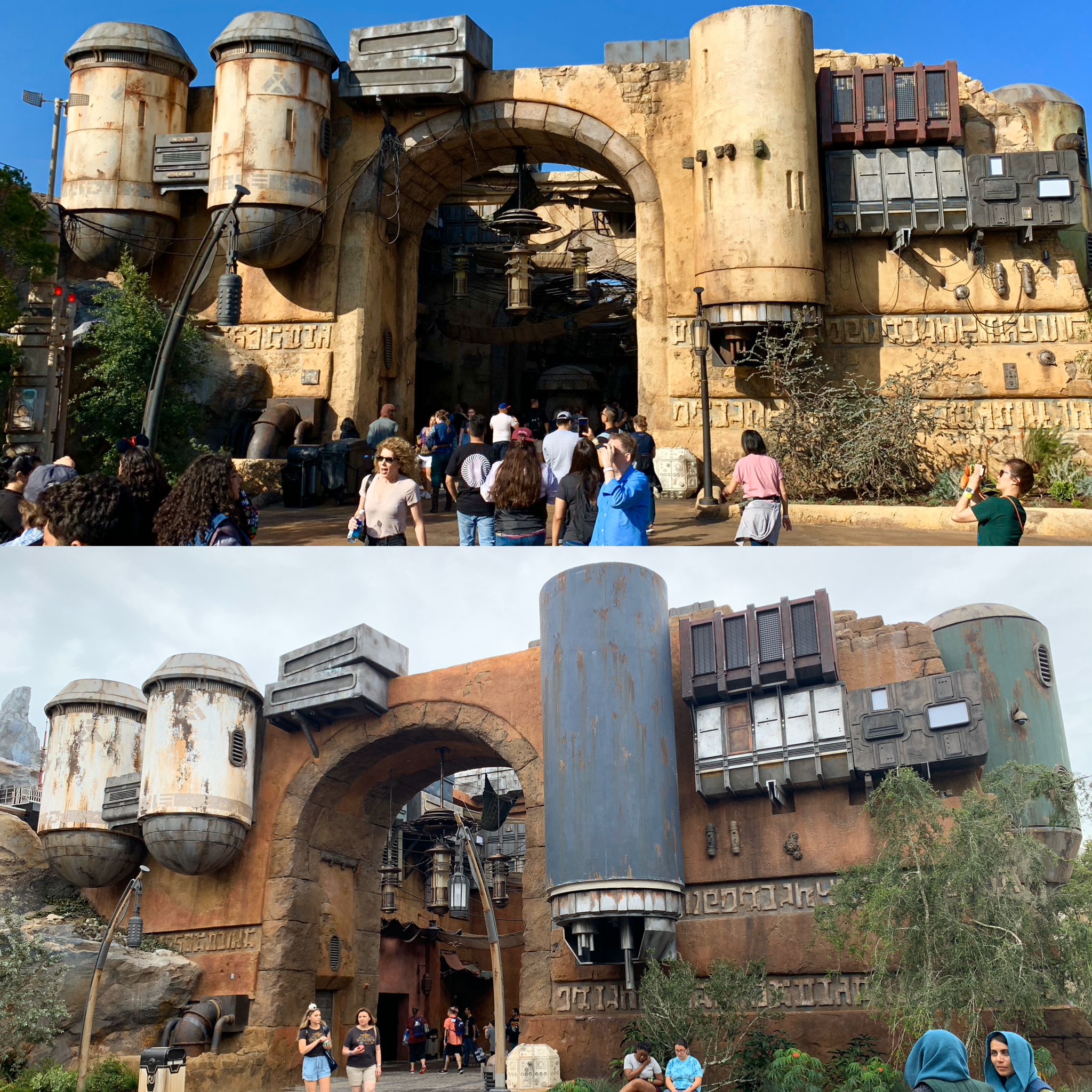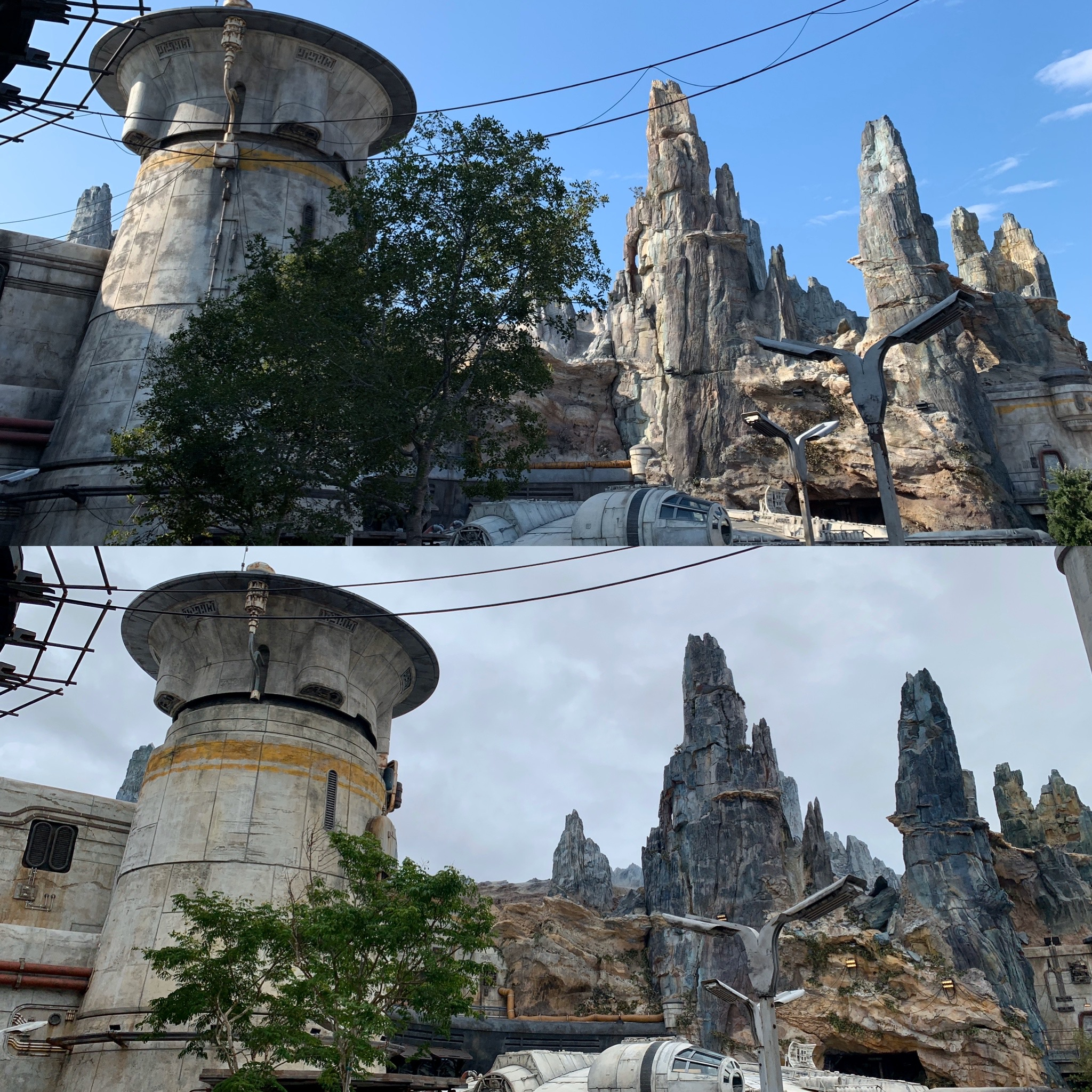 **Disneyland Star Wars: Galaxy’s Edge are the top photos and Disney's Hollywood Studios are the bottom**