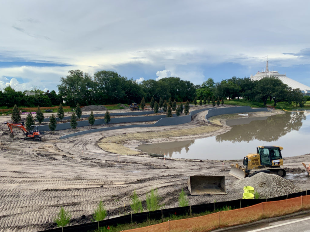 With the TRON construction, the Walt Disney World Railroad has also been down, which has provided the parks with a great opportunity to take what was once just a basic retention pond between Magic Kingdom and the Contemporary Hotel and plus it to make what will be a very visually appealing location for guests traveling by bus or Monorail.