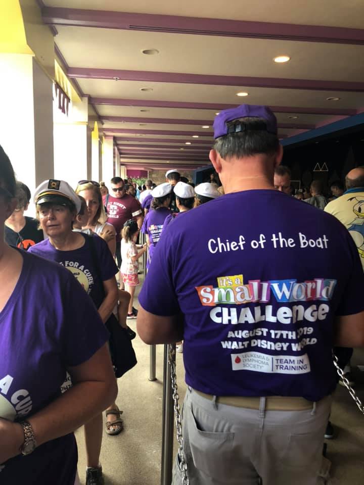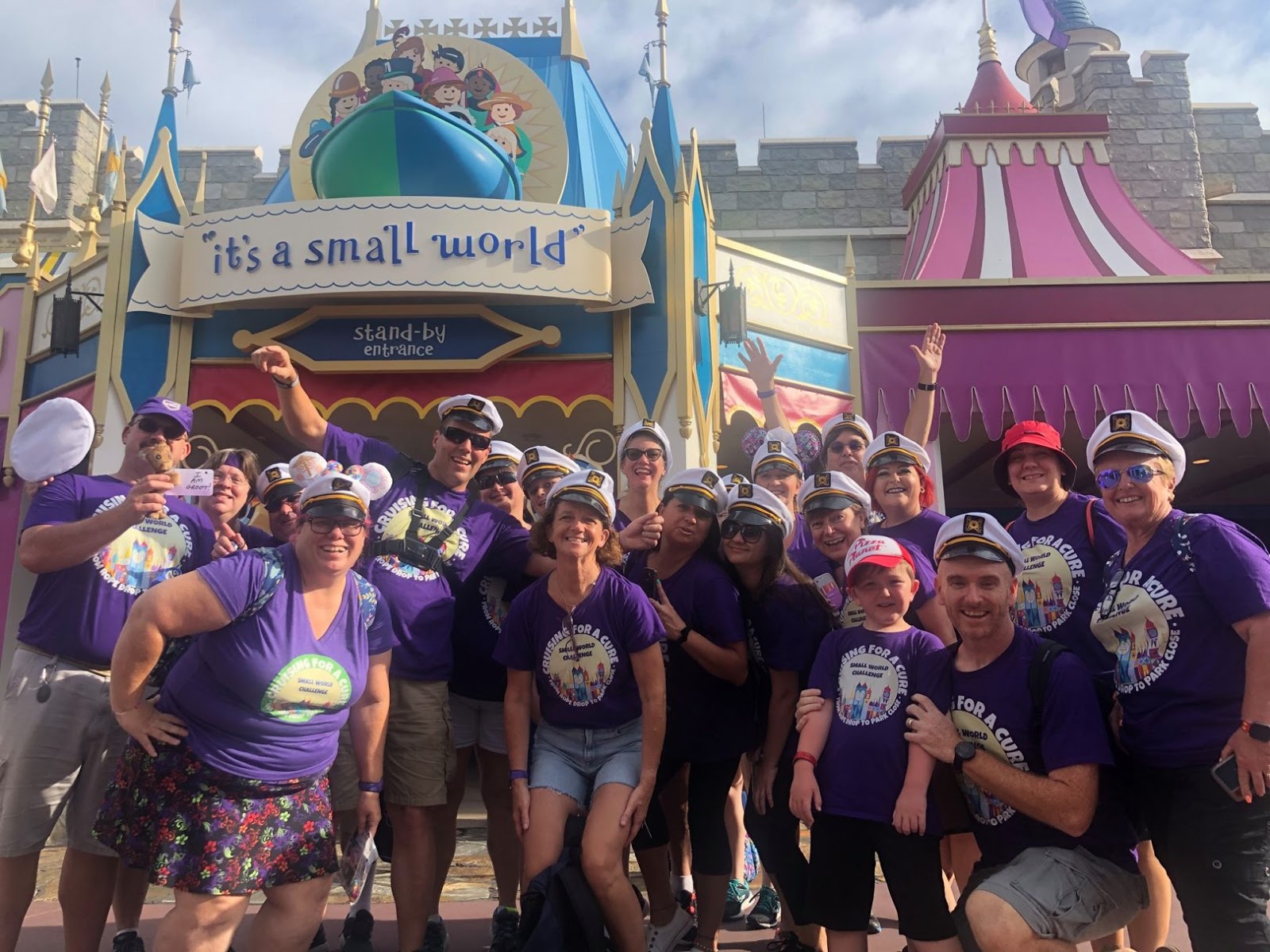 Fashionably attired in captain hats and purple shirts touting the phrase “cruising for a cure,” the event day started at the food court at the participants' resort hotel. After boarding a bus to the Magic Kingdom and arriving as the park was opening, the group posed for photos before heading up Main Street to Fantasyland. There the fundraisers began their journey on “the happiest cruise that ever sailed.”