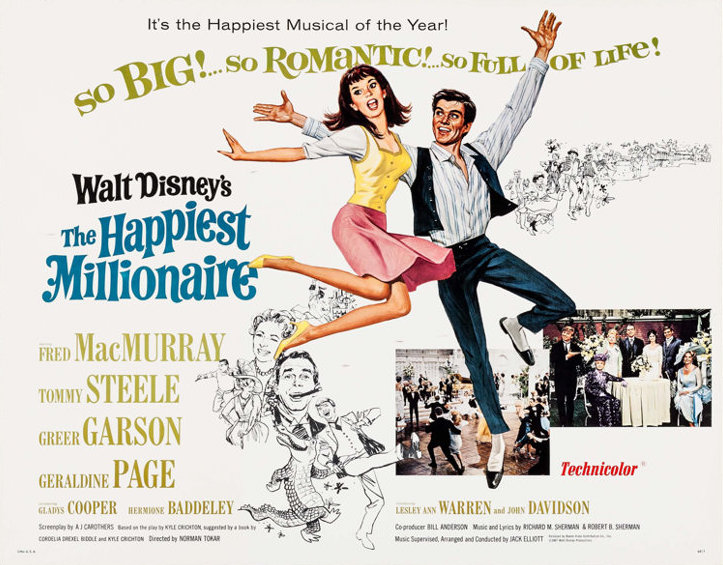 Following the enormous success of Mary Poppins, Walt Disney put into production another big-scale musical production, this time drawing influence from the autobiography of Cordelia Drexel Biddle, My Philadelphia Father. The Sherman Brothers wrote an all-new score for the production and Fred MacMurray was cast alongside some screen legends like Greer Garson and Geraldine Page, with the introduction of newcomers Leslie Ann Warren and John Davidson.