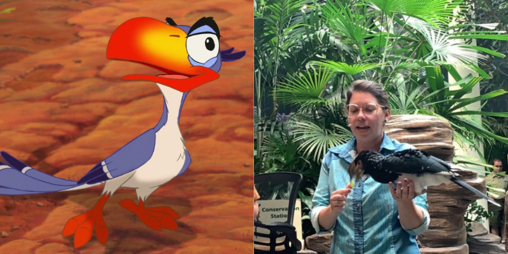 A slightly less intimidating character can be found at the Animation Experience at Conservation Station. The bird that inspired Zazu is one of the subjects of this drawing class over at Rafiki’s Planet Watch. While he’s taking a break from overseeing a young lion cub set to take over as ruler of the pride, why don’t you see how well you can draw him?