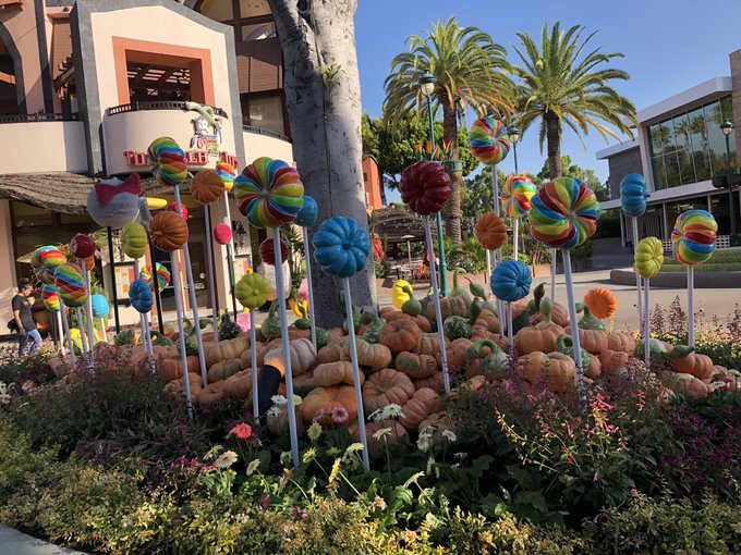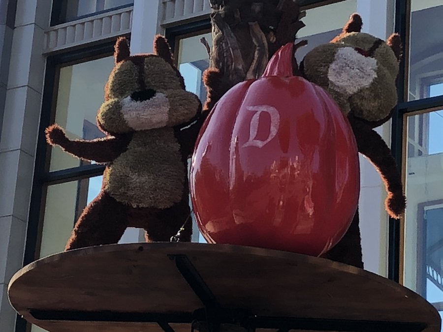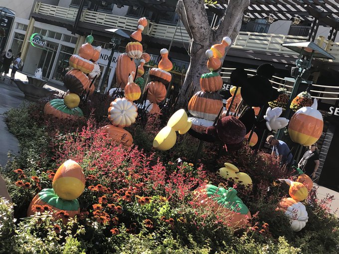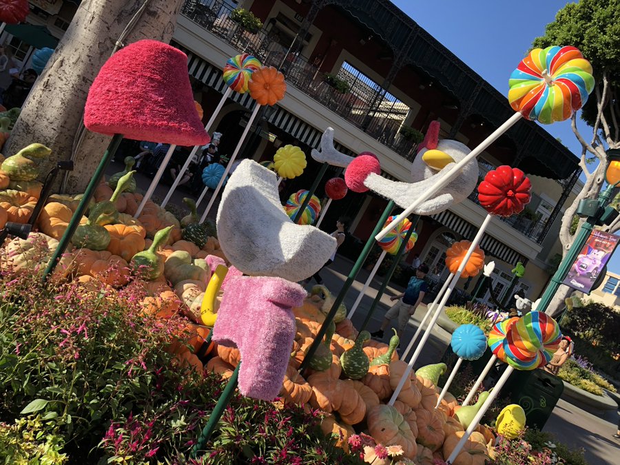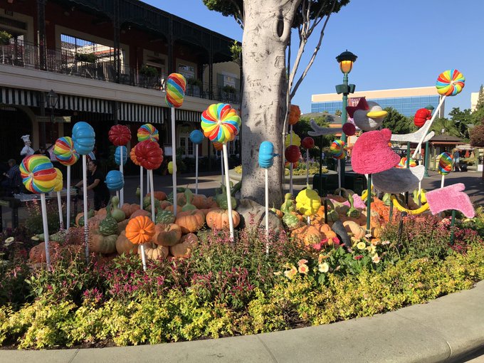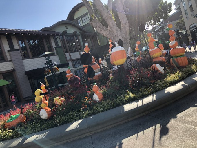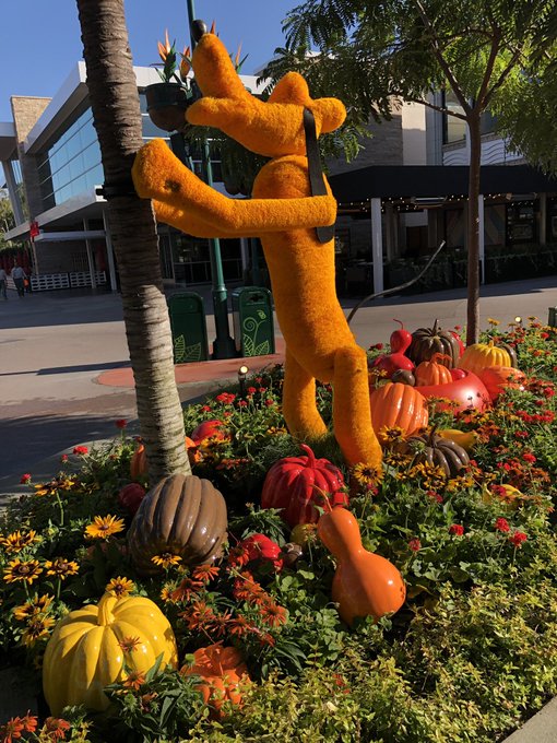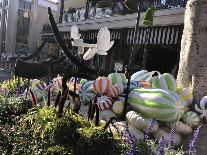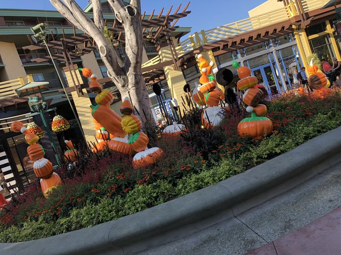 The decorative topiaries and planters throughout Downtown Disney have been updated with some Autumn elements.