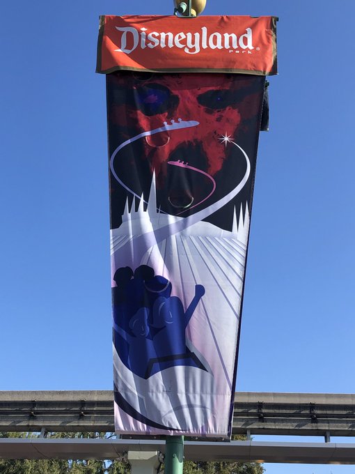 The banners around the esplanade feature some of Disneyland’s best attractions.