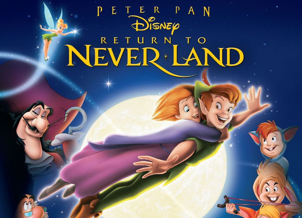 Walt Disney’s Peter Pan received a sequel from Disney Toon Studios in 2002, one of the few that received a theatrical release. The film draws inspiration from the end of J.M. Barrie’s play where Peter Pan returns to the Darling nursery to find that Wendy grew up and instead brings her daughter Jane to Never Land. Twisting that premise, Captain Hook intends to kidnap Wendy and unintentionally grabs her daughter Jane. Now on Never Land, Peter Pan and the Lost Boys help her overthrow Hook so she can return home.