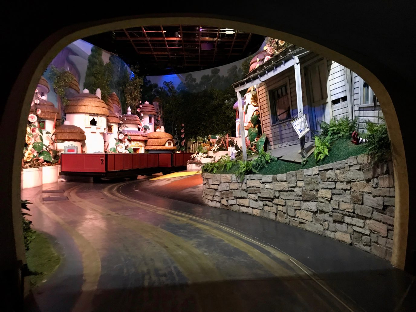 The Great Movie Ride was the centerpiece of a brand-new theme park at the Walt Disney World Resort in 1989 and the grand finale was none other than The Wizard of Oz. Did you know the attraction had a deleted Wizard of Oz scene? Before entering Munchkinland, Guests would’ve gone through the twister to be transported “Over the rainbow.” However, a clause in the contract with Ted Turner limited the duration of time that could take place in the Oz section and the tornado exceeded that time limit. As a result, the tornado room was repurposed as an homage to Fantasia with The Sorcerer’s Apprentice. The photo below was taken by our writer Jeremiah during a special walkthrough event that TCM hosted as the attraction was nearing its closing date.