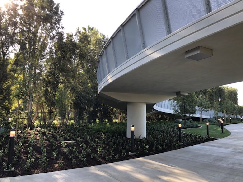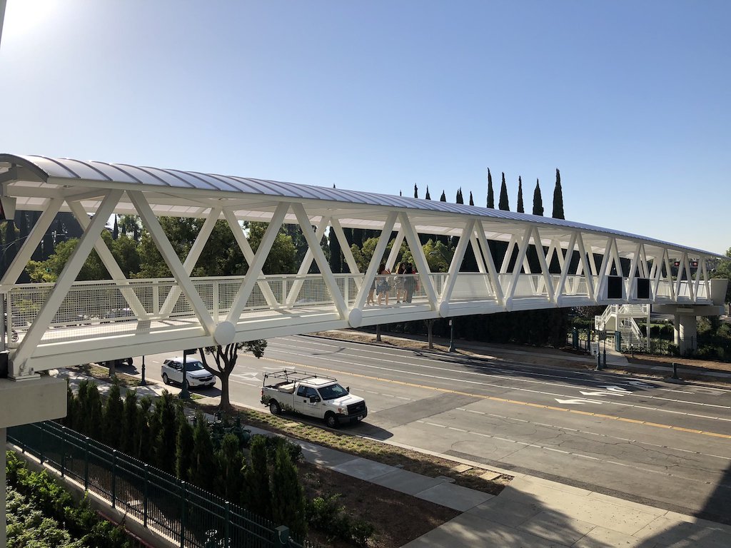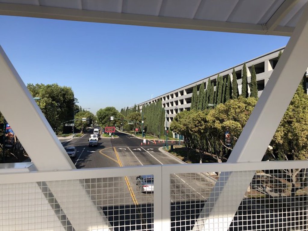 After months of construction (and following scrapped plans for a fourth Disneyland Resort hotel), the pedestrian walkway over Magic Way is officially open. The bridge connects guests from the new Pixar Pals parking structure to Downtown Disney at the Disneyland Resort. Mike Celestino shared pictures of his morning jaunt into the resort.