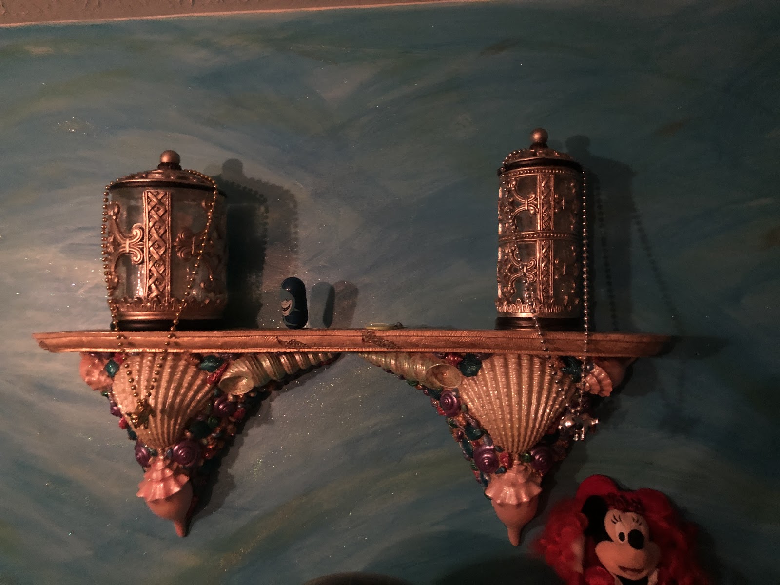 I got out all my brass Ariel and Ursula pieces and put them in the room. I was so happy to see them all displayed instead of stuck in a curio cabinet or still in the original box.
