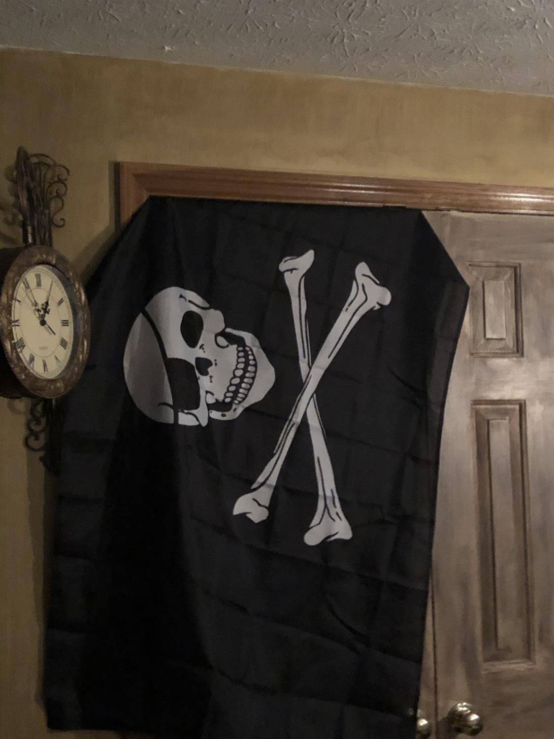I started to show people the room and the reaction was priceless. When friends come to stay they always request the pirate room over the Mickey room (the Mickey room....that’s another story for ANOTHER time) and a surprising tradition began. When people stayed in the room, they would leave something in it. My friend Kendra left her necklaces from the flying pig because it was pirate booty. And she sent me a Jolly Roger flag when she got home.