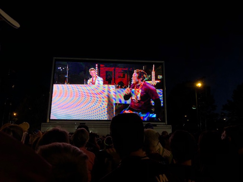 In addition to the live coverage at the start, there was also a team waiting just past the finish line ready to interview runners. We even enjoyed live course updates, seeing the first few runners as they approached the final stretch. In fact, we hadn’t even moved from our spot in Corral D when the first group of runners crossed the finish line!