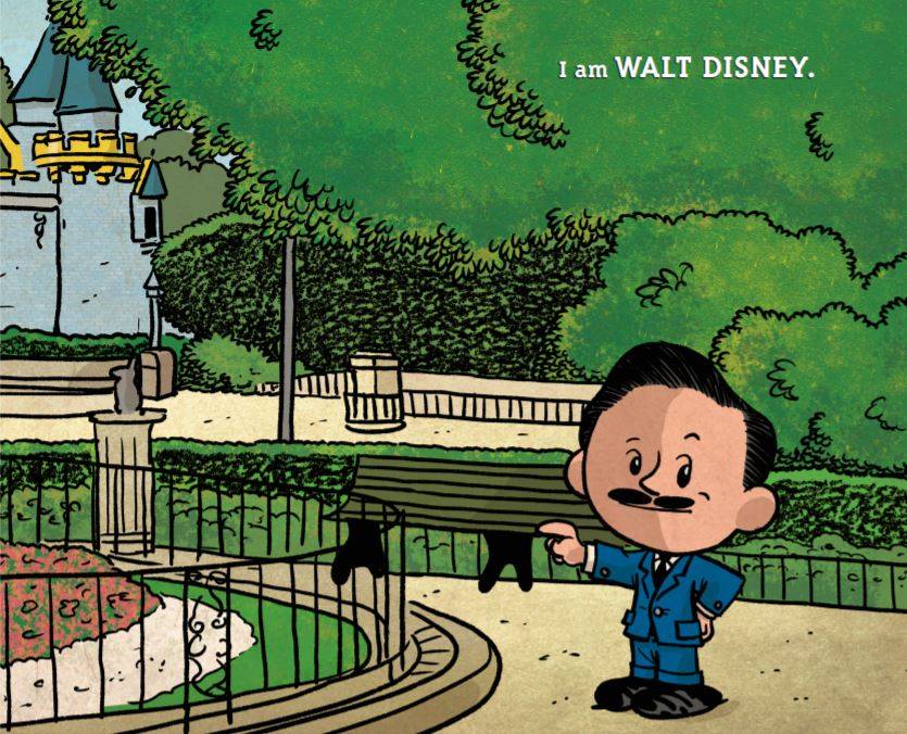 As in all of his Ordinary People Change the World books, the subject is drawn as a seven-year-old kid. Meltzer says Walt is sketched by artist Christopher Eliopoulous as a cross between Charlie Brown and Calvin and Hobbes complete with a mustache.