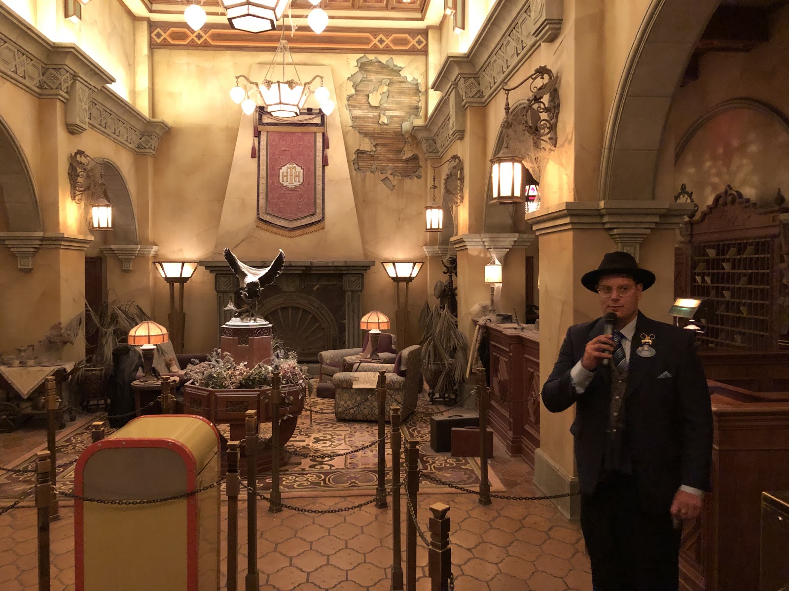 Inside the attraction itself, I found a very familiar-looking lobby and felt that I had stepped back in time at DCA, as the dimensions of this show building match the California iteration more than the larger-scale Florida version. Stepping into the infamous library, I was greeted not by the usual video pre-show, but by a very entertaining singing bellhop Cast Member, who (through three visits) crooned about the Hollywood Tower Hotel, Dapper Day, and how we were all doomed. It was a very unique way to start off the experience, though I doubt it’s something the average guest will get during the normal operating day at the park.