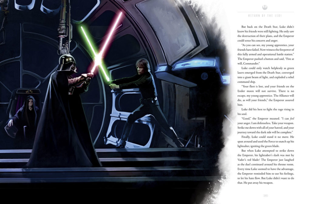 Accompanied by illustrations by regular Star Wars artist Brian Rood that are so gorgeously and realistically rendered I honestly can’t tell if they are fully original works or simply screen captures from the films that have been monkeyed with in Photoshop, the story moves on from the prequel era, skipping “Star Wars Stories” Solo and Rogue One and making its way directly into the original trilogy. Here, readers learn about young Luke Skywalker and his adventures with friends Princess Leia and Han Solo in their battles against Darth Vader and the evil Galactic Empire.