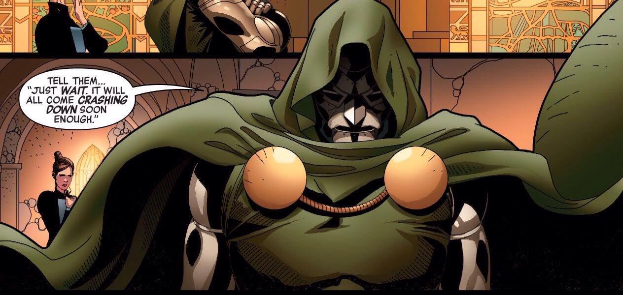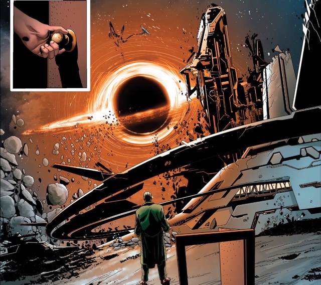 In this new story, a black hole has been opened up on the moon in an attempt to solve the climate change problem. Doom warns people of the dangers of the project which is interpreted as jealousy due to his lack of involvement and the fact that the project comes from Tony Stark and Reed Richards, two of his longtime rivals.