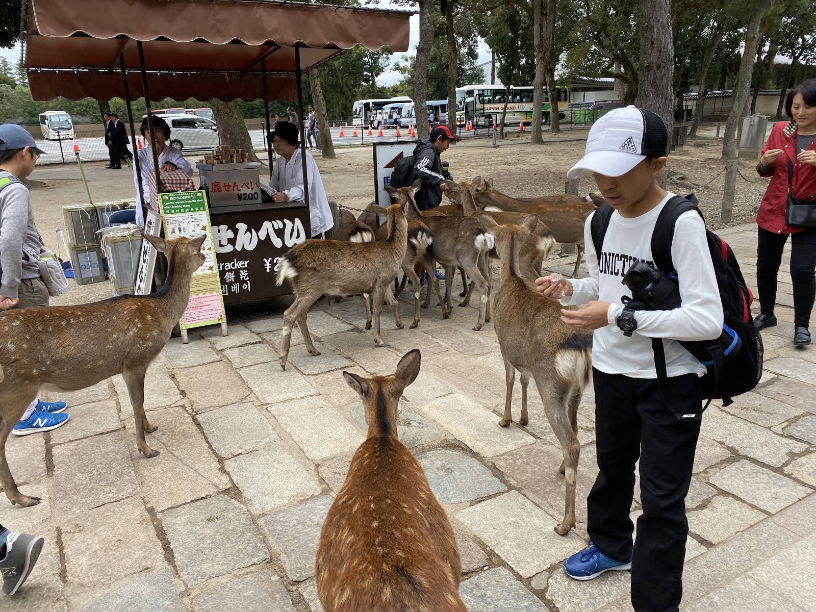 Like Miyajima Island, Nara is covered with deer, who are even more aggressive than the ones on the island. Keiko shared that the deer on Miyajima actually came from Nara, but this touristy area features stands that sell packs of biscuits that can be fed to them. We were warned not to do so, as the deer will gang up and sometimes bite the garments of the hands that feed them. They were cute, but we appreciated the pro tip.