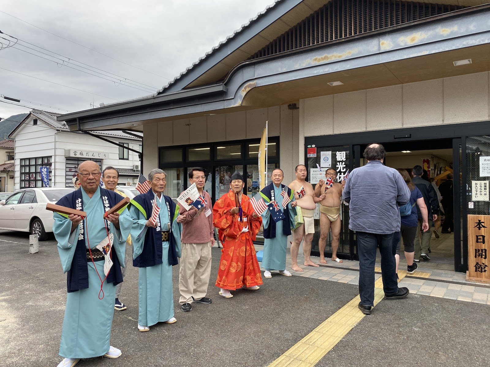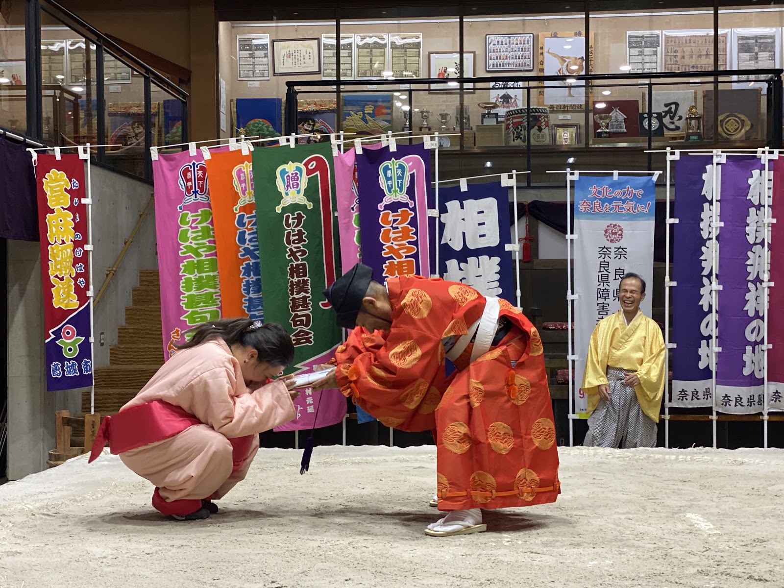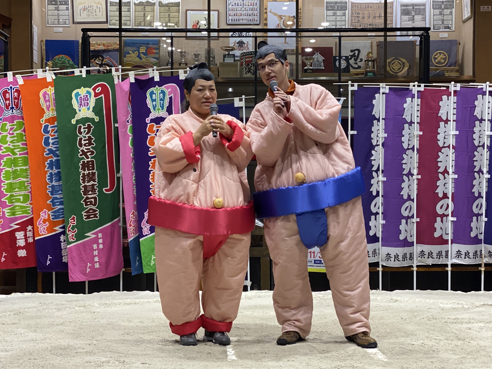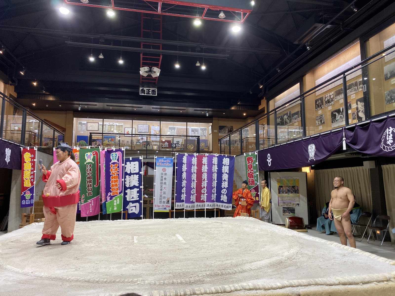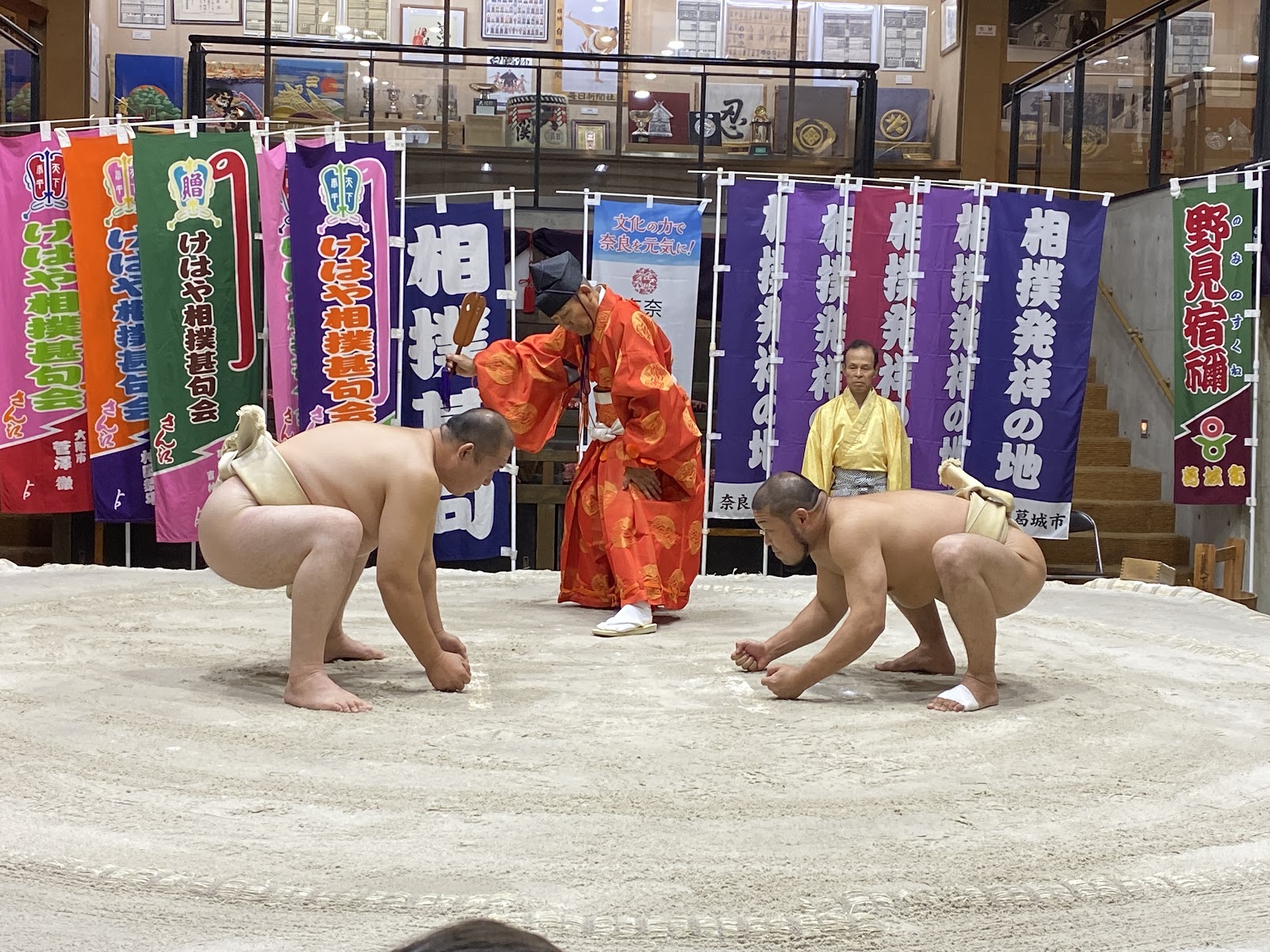 Back on the bus, we enjoyed our mochi as we travelled further into Nara Prefecture to a town called Katsuragi City, the birthplace of sumo wrestling. We went to the Kehaya-Za Sumo Museum to learn more about the sport, the traditions of it, and see a live presentation, which also included a musical performance by a local troupe. We were told that weight doesn’t really matter in the sport and there are skinny sumo wrestlers. The wrestlers doing the demonstration were 275 and 220 pounds each and they seemed to win an even amount of times. It seems to depend more on who is able to get the best hold on the other first, although the lighter fighter seemed at a bit of a disadvantage as the bigger wrestler picked him up by his waistband several times to lift him out of the circle of the Dohyō.