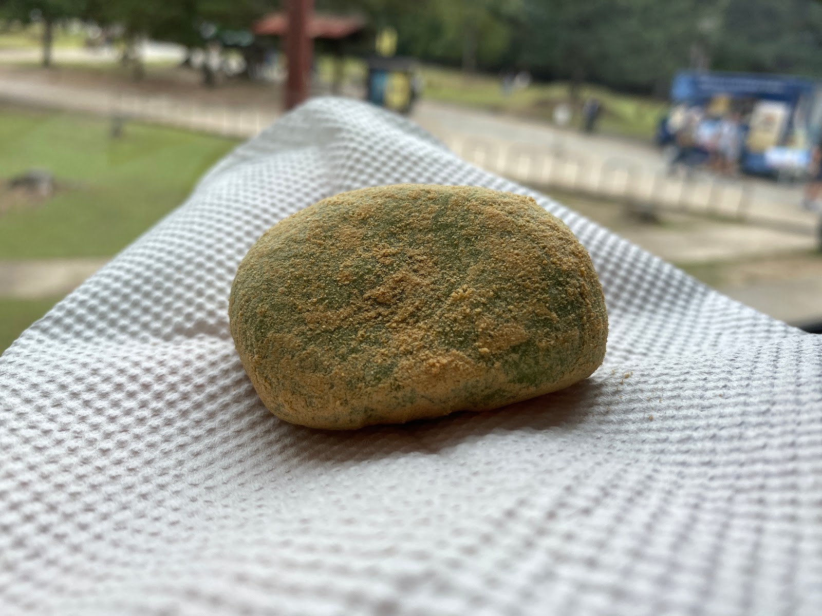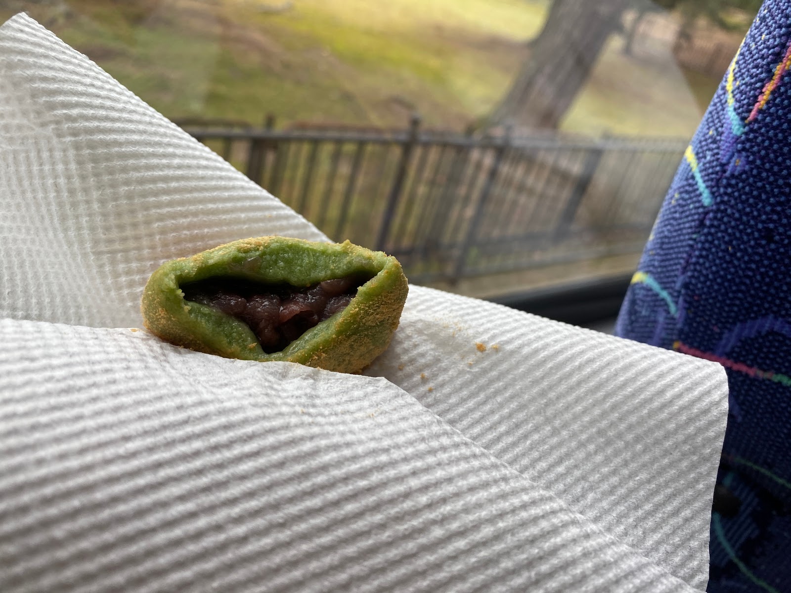 Next we visited Nara’s main shopping and dining street. We went to a mochi shop as a group and got to watch a mochi making demonstration, which was a sight to see. James and Tomomi took away some mochi treats for everyone to enjoy back on the bus after time on our own for lunch. Fresh hand-made mochi is delicious!