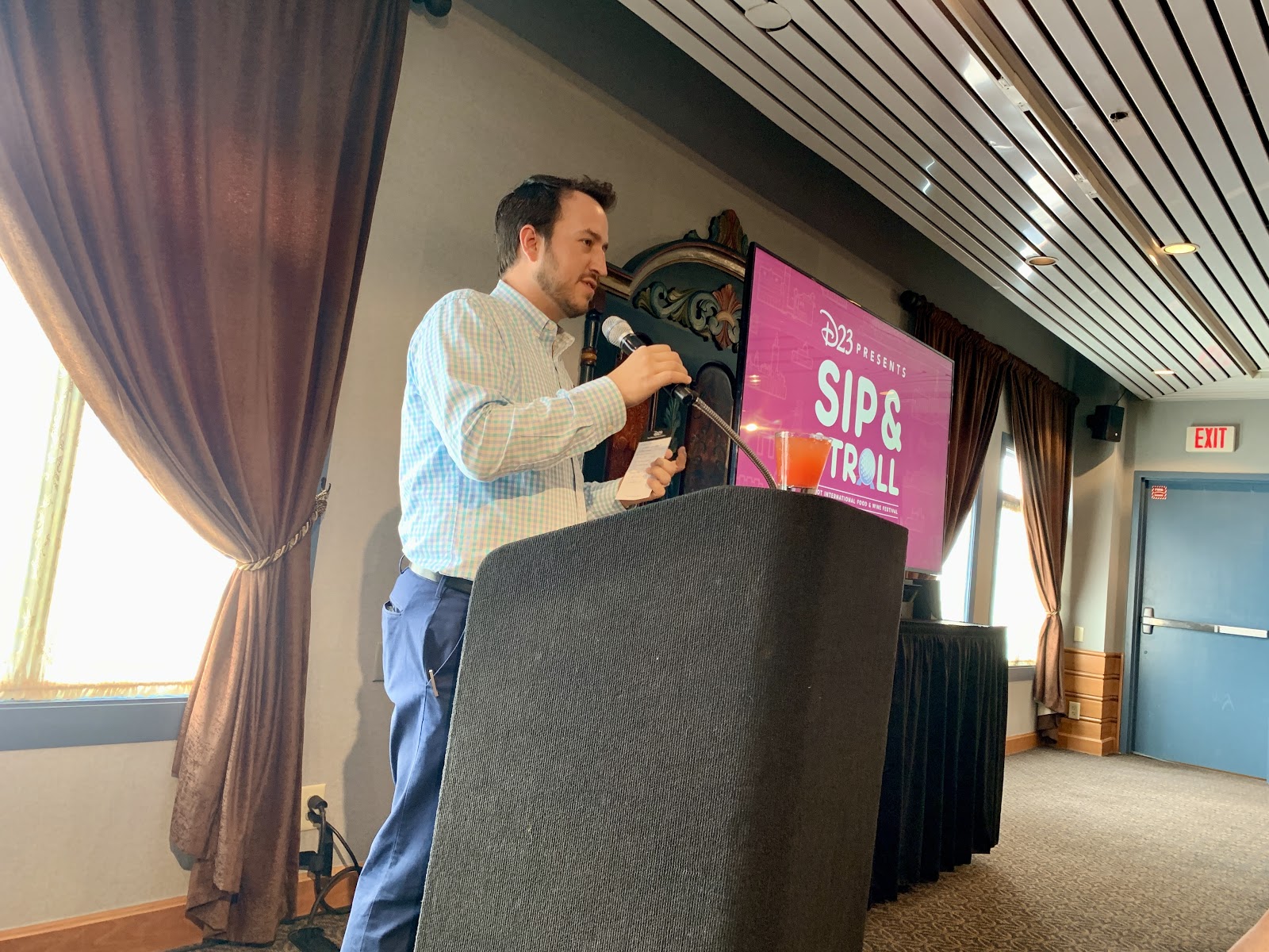 The morning kicked off with Alex from the D23 team welcoming us and giving us an update on activities and events coming next year (keep an eye on D23 social media) not only to Florida but also New York and Chicago. Alex then lead us in a toast with the Aulani Sunrise drink from the Hawaii Festival Kitchen, an Epcot International Food & Wine Festival favorite.