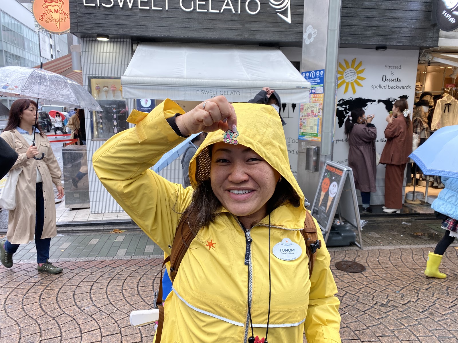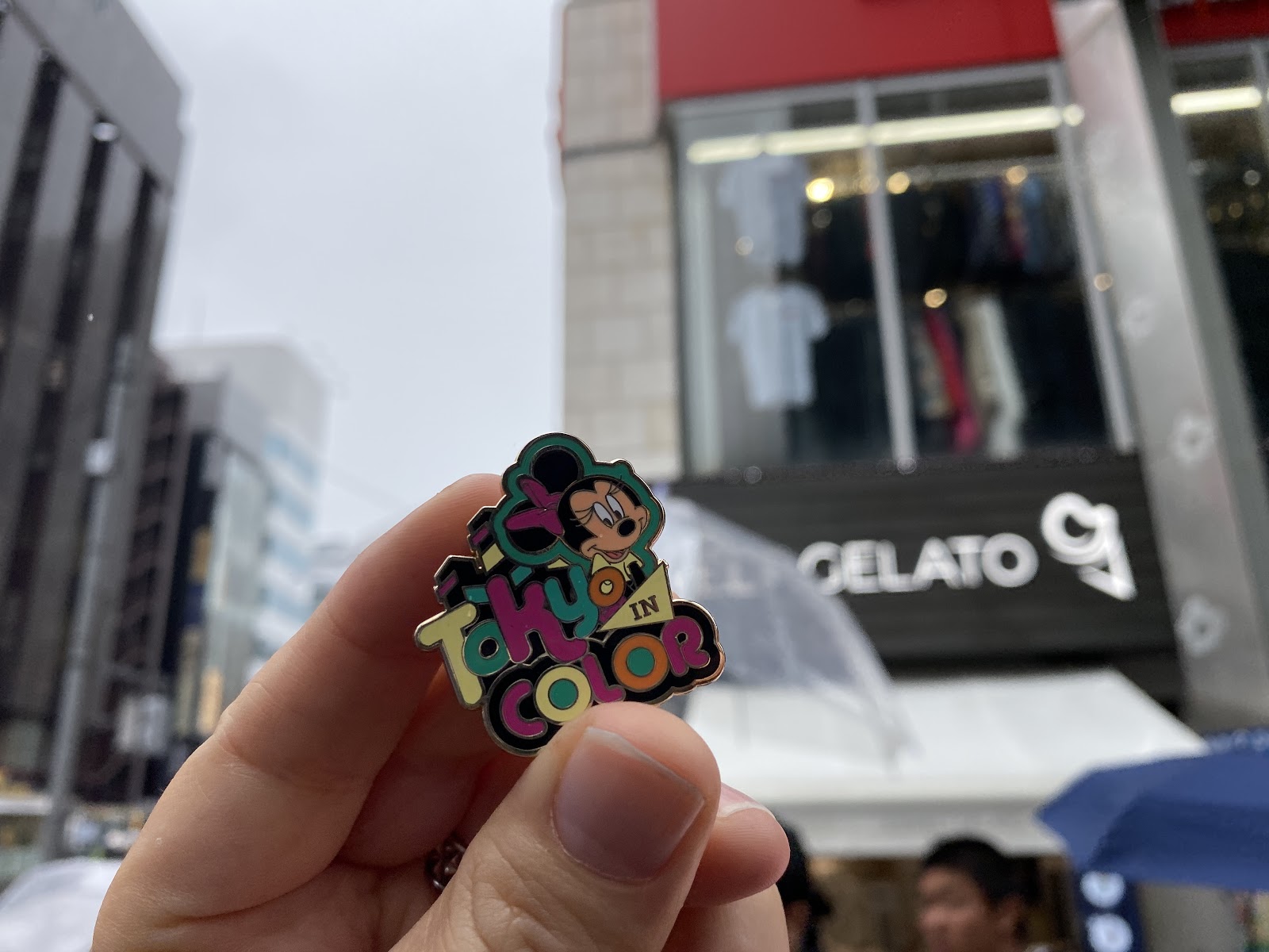 Our next stop was the famous Harajuku district, once known for its outrageous fashion. While that trend isn’t exactly dead, it’s not more famous for kawaii desserts. It’s there that Tomomi, one of our Adventure Guides, handed out our pin for the day. It features Minnie Mouse in bright colors with the day’s title, “Tokyo in Color.”