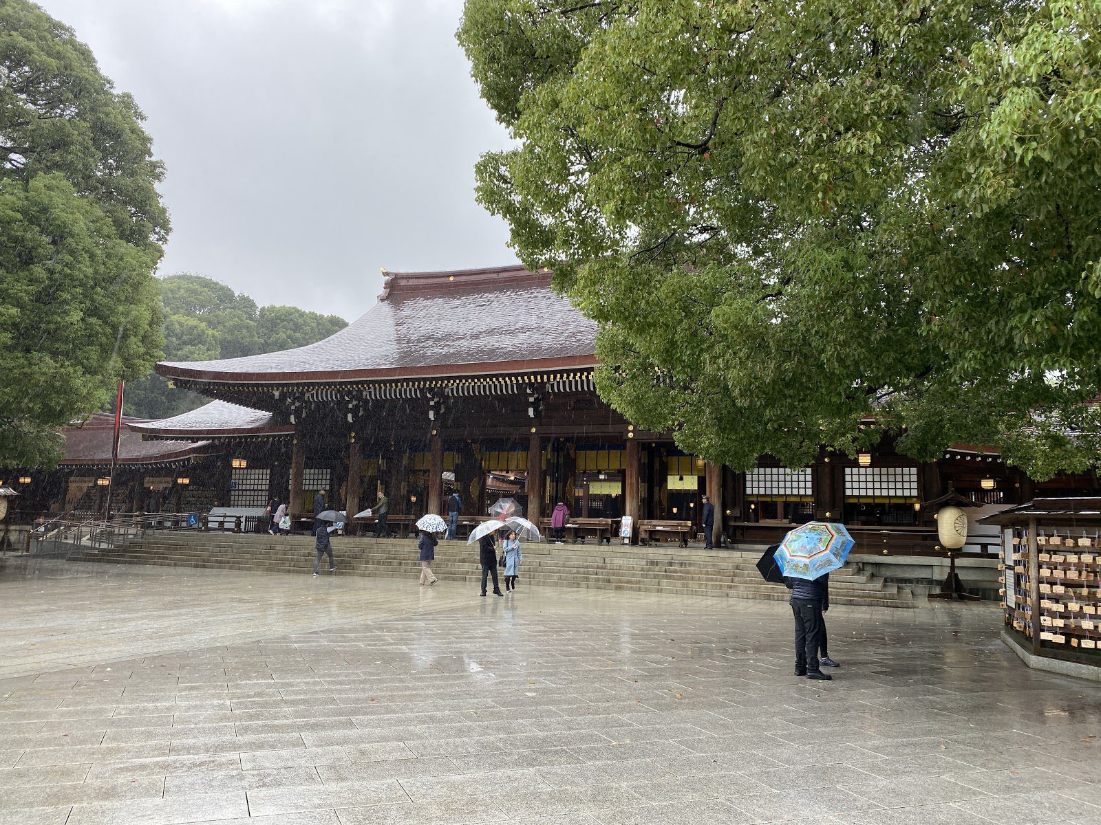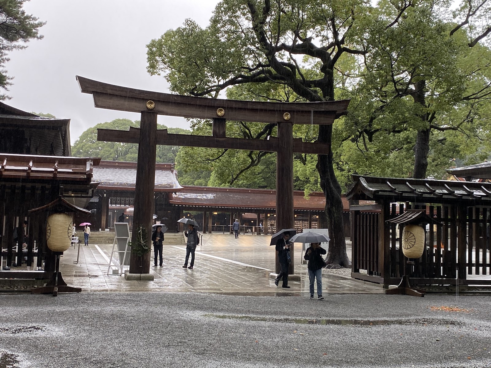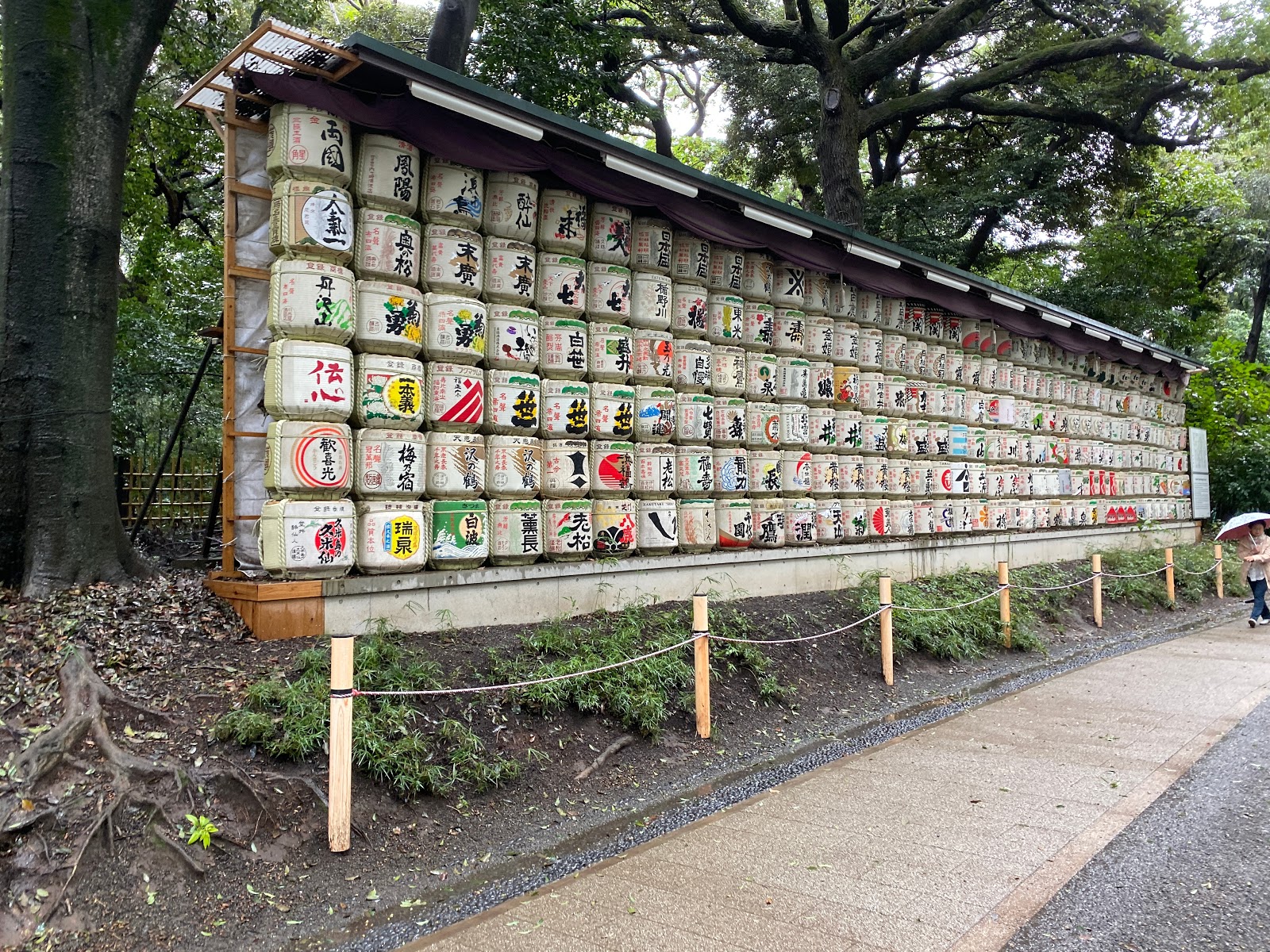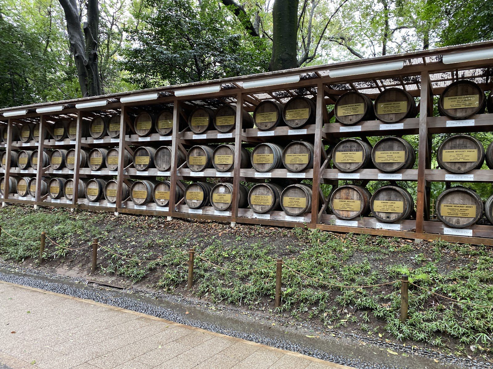 After the ceremony, we walked by a corridor of sake barrels on one side and French wine barrels on the right. Sake barrels are standard for a Shinto Shrine but wine is uncommon. Emperor Meiji for whom the shrine is named had a good relationship with France and loved wine.