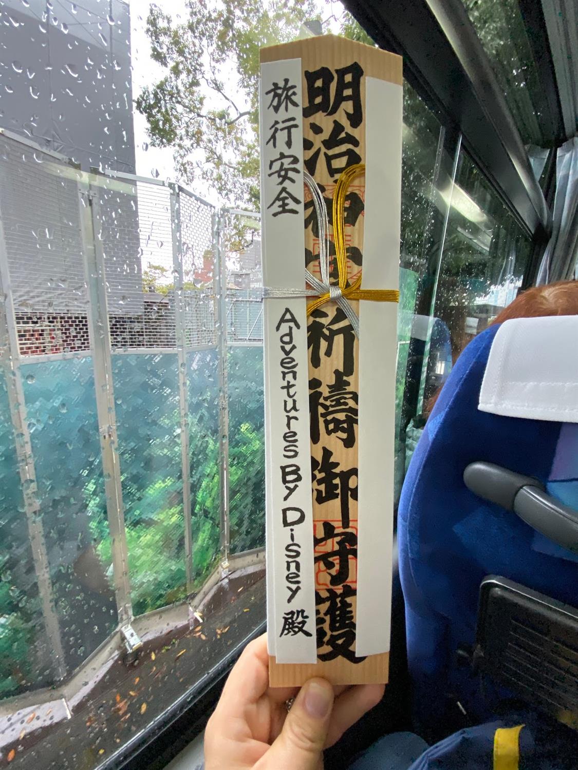 Inside the temple, we attended a traditional Kagura ceremony. No photos were allowed and those wishing to opt out for religious reasons could explore the grounds on their own. The ceremony includes a wish for the safe travels of our Adventures by Disney group. At the end, we were given a sugar chrysanthemum and sake to cleanse our soul. Tomomi was given a tablet with the wish written on it and she is going to bring it back to the shrine in the new year for the bonfire so our wish goes to the heavans.