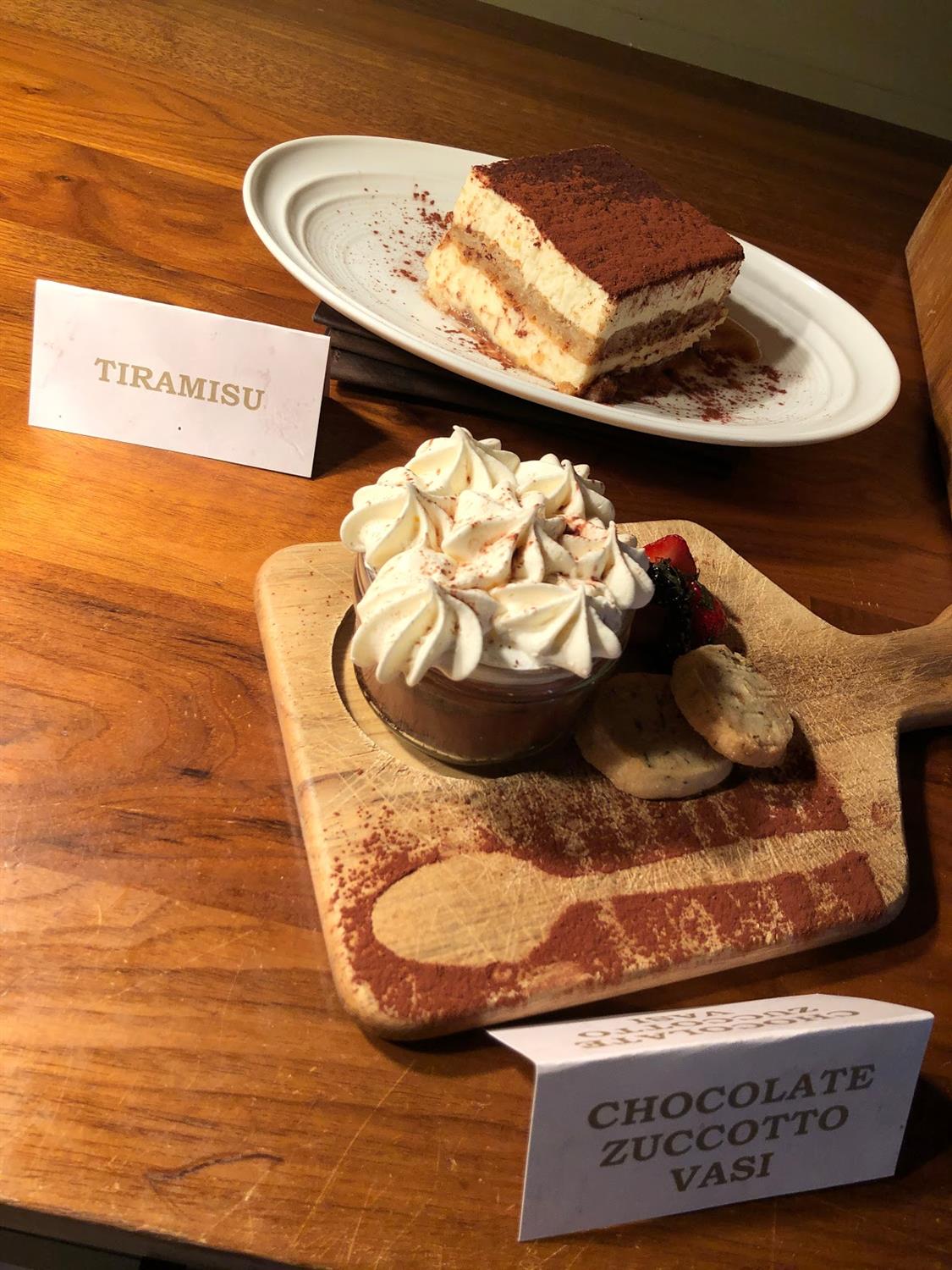Tempting desserts offered up at VIVO Italian Kitchen include Chocolate Zucotto Vasi, Ricotta Cheesecake, Tiramisu, and homemade Gelato.