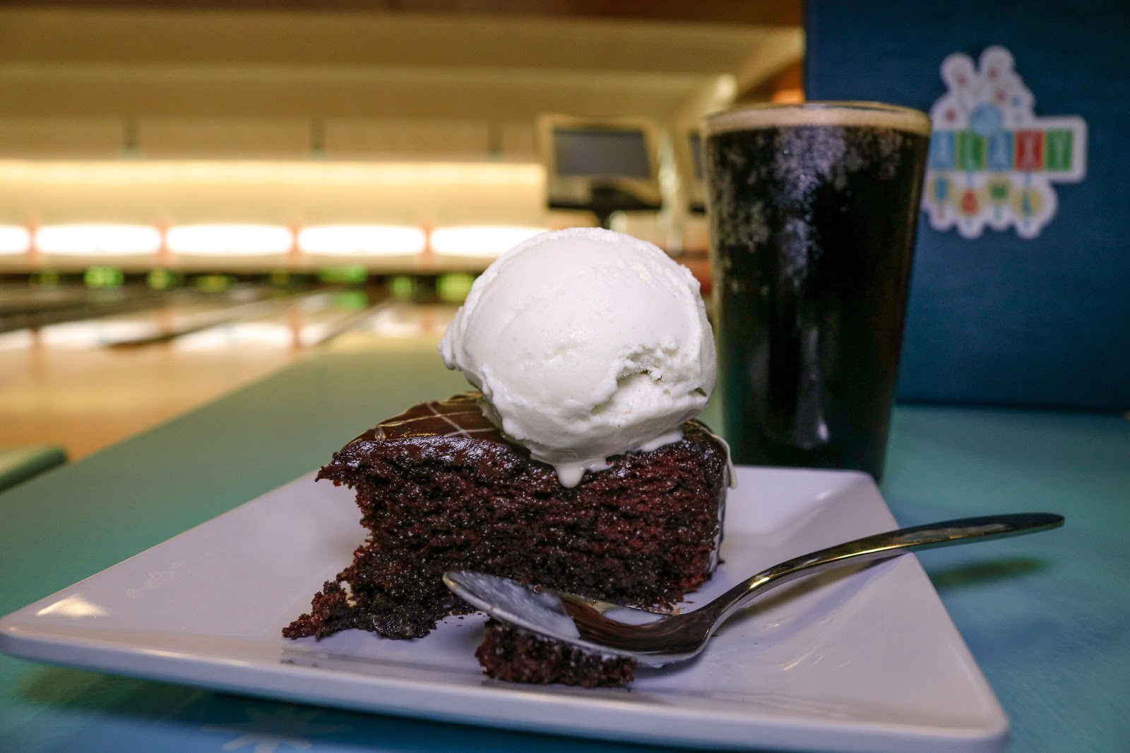 Take the classic Florida beach resorts of the 1950s and 60s update it with all the modern conveniences of the 21st century and throw in a bowling alley and you have my favorite place to stay, Universal’s Cabana Bay Beach Resort. The Galaxy Bowl Restaurant overlooks the ten-lane bowling alley and transports you right into those classic films and television shows of yesteryear. There is no better way to give you that feel you are in the ’50s than to mix the drink that helped define the decade and a great piece of cake in the Coca Cola Chocolate Cake.