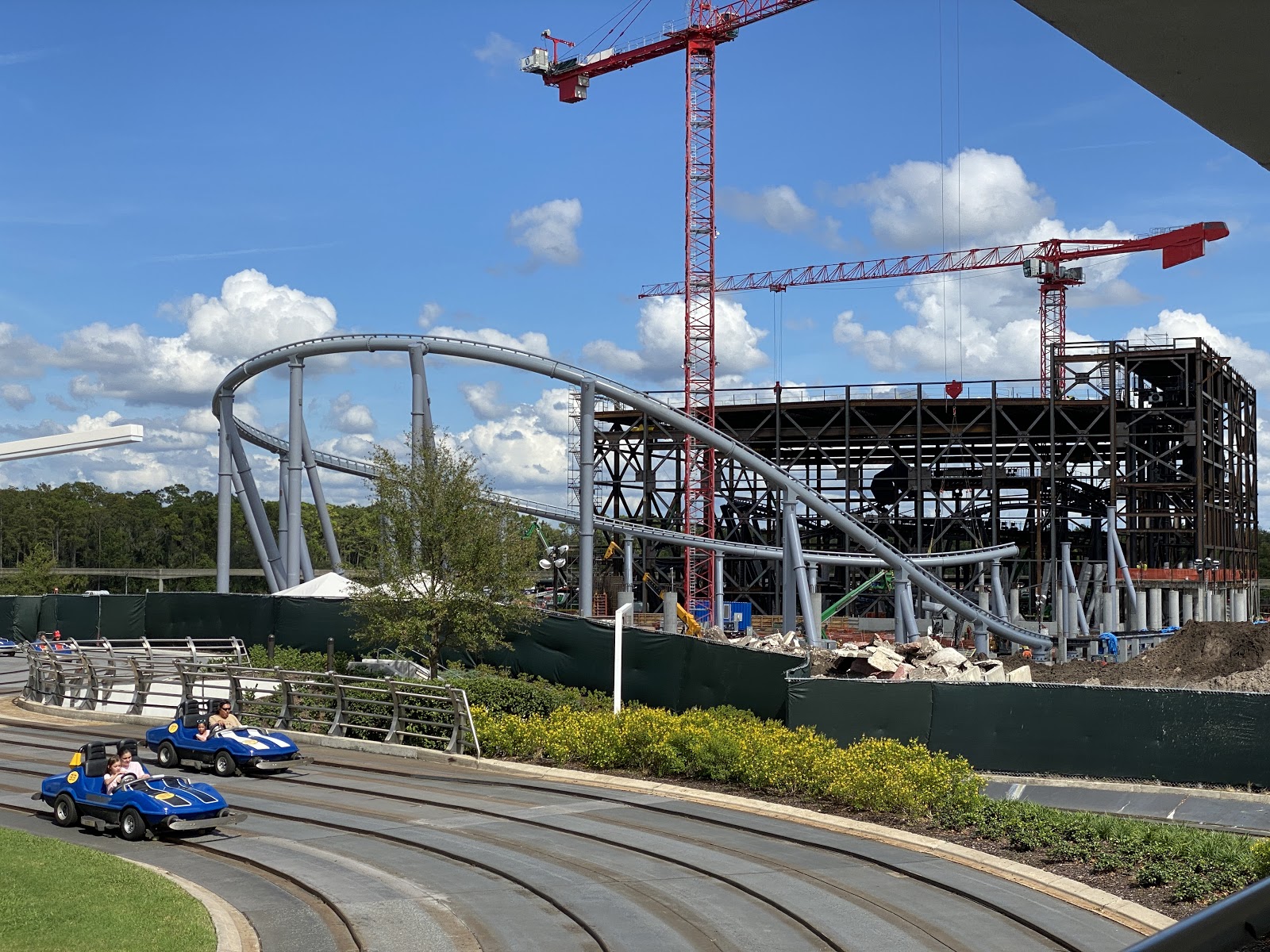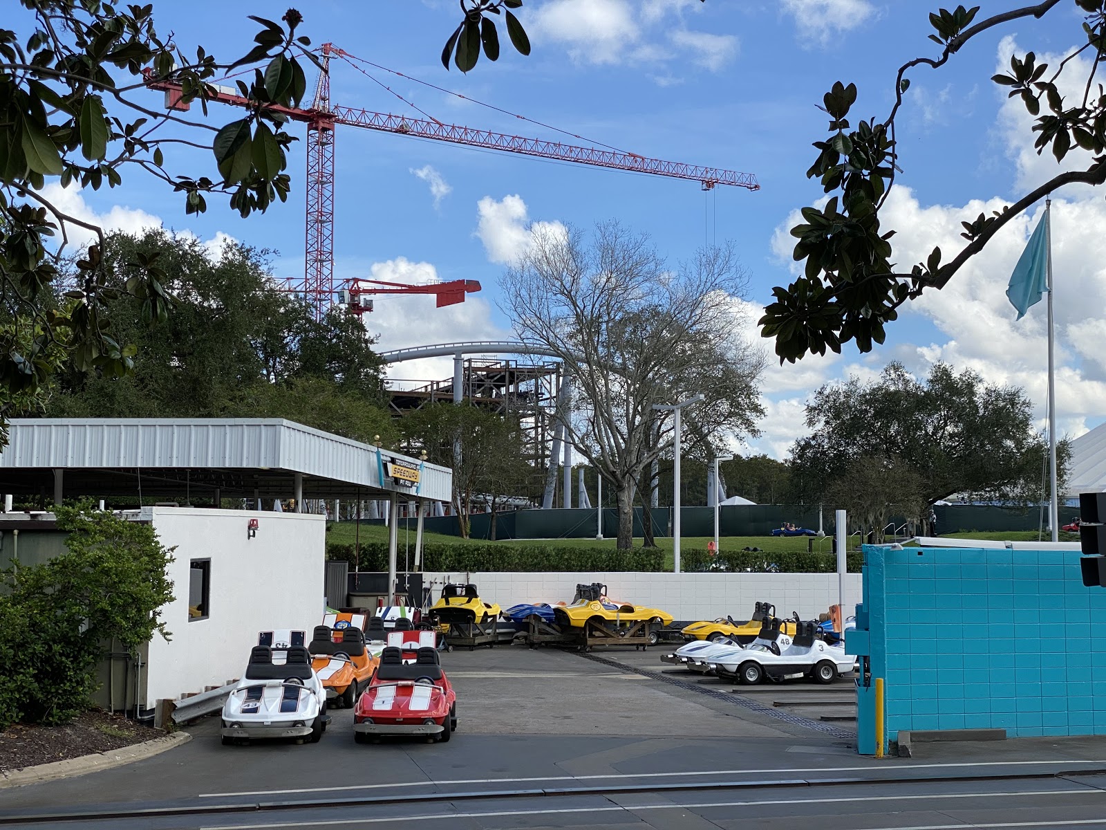 A major progression was reached as its outside track was recently put into place. With that, you can now get a good idea of how large it will be and how visible it will be from around Tomorrowland and Storybook Circus.