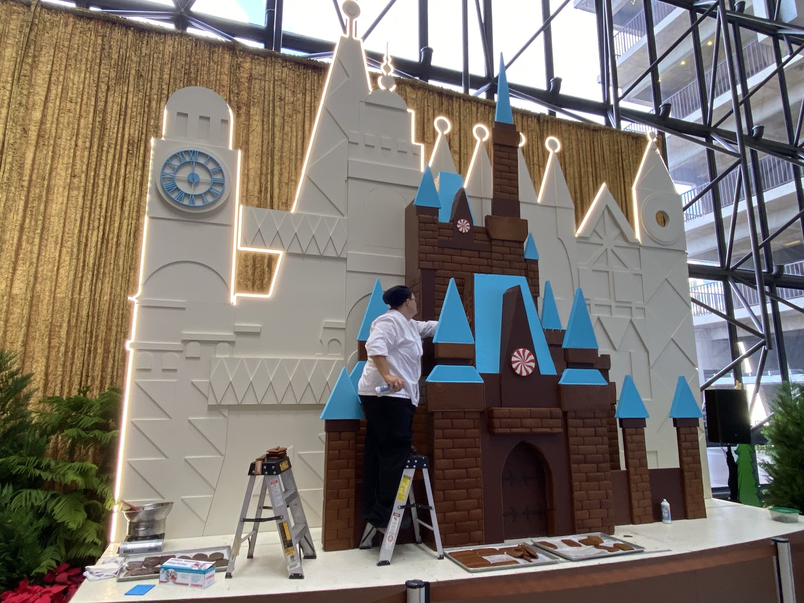 Yes that’s right, the Contemporary Gingerbread Castle started construction also. I know many guest countdown the days for these special holiday happenings, but I have to say I would love a week or two between Halloween and Christmas where there is just a reset of everything. Sure, call me the Grinch if you like but, no matter what, I still took pictures of the tasty construction.