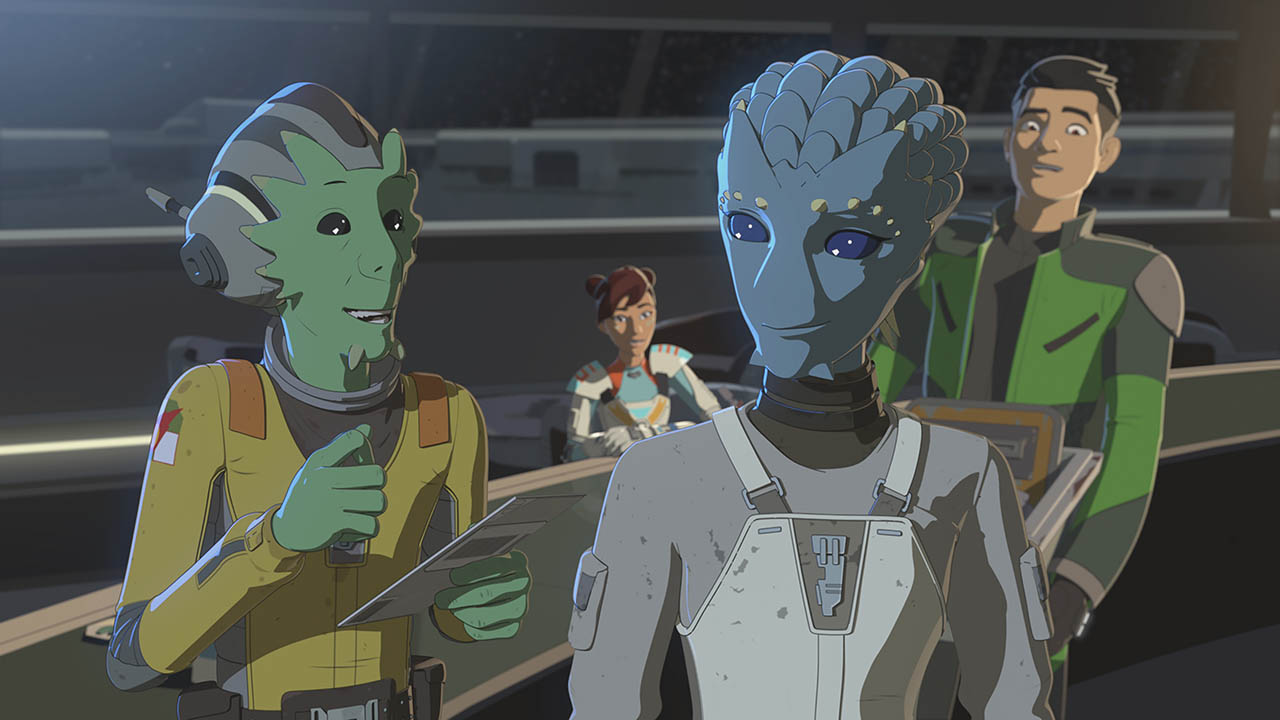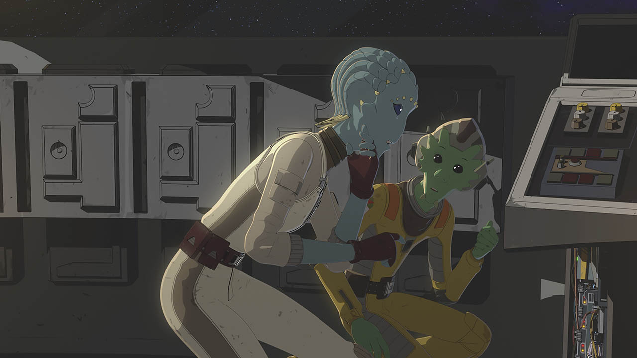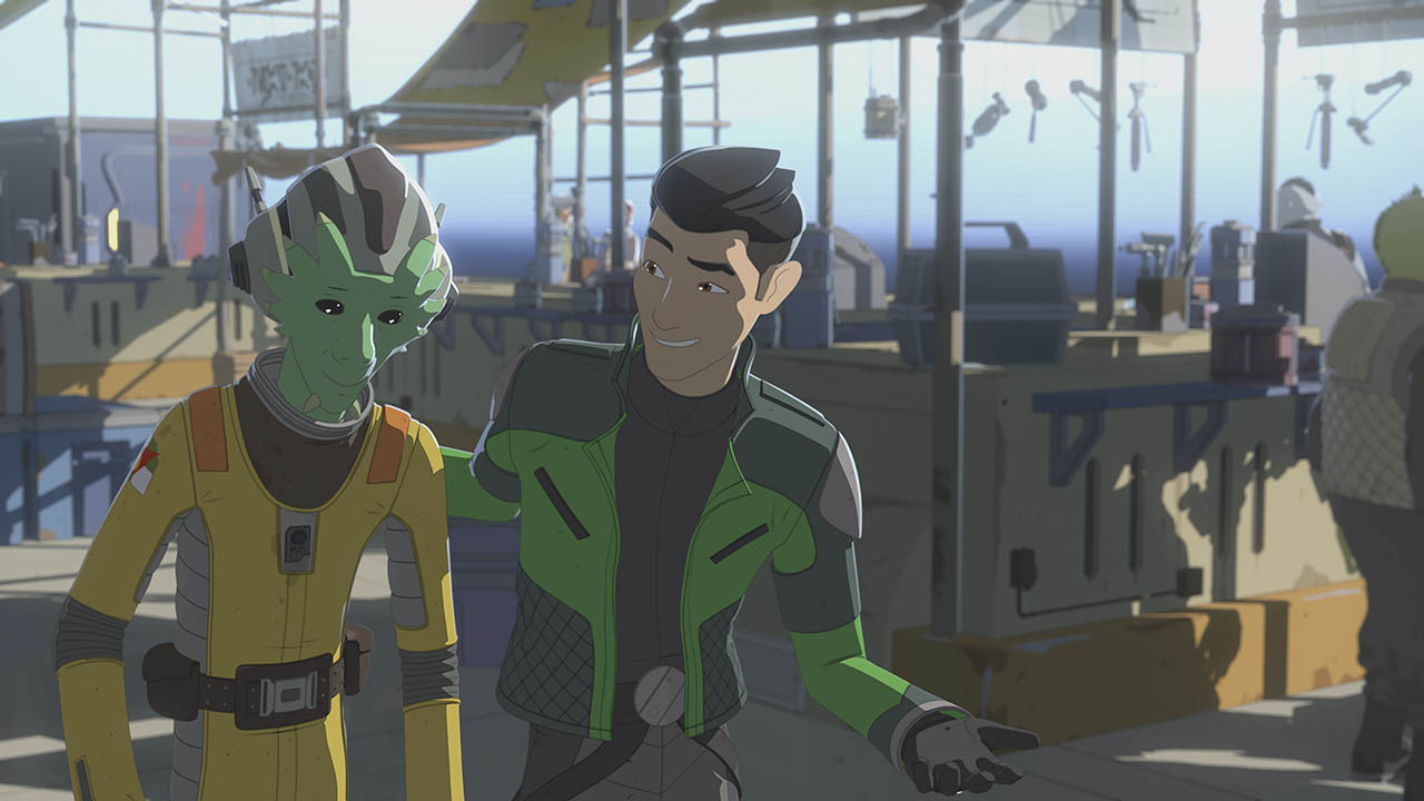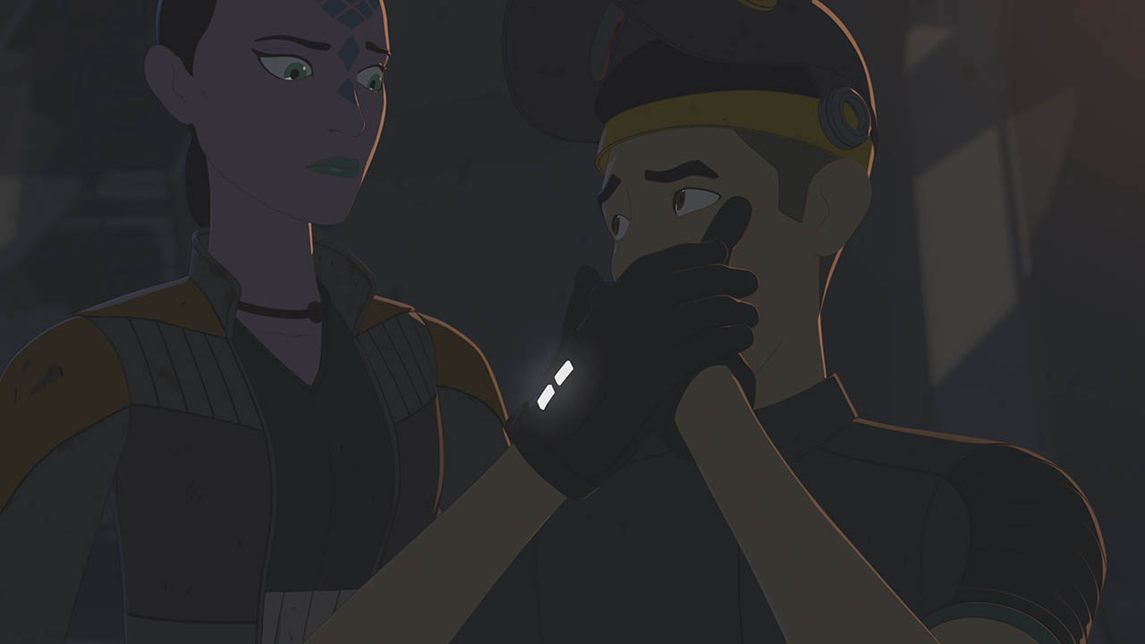 Having grown attached, Neeku and Nena try to convince each other to join their respective sides, but they’re both convinced they have already made the right choice. The First Order shows up just as Nena is escaping, and she reports to Commander Pyre (Liam McIntyre) before jumping away into hyperspace. Kaz and Neeku scramble to undo the sabotage in the station’s systems as a TIE fighter squadron attacks. Finally, Kaz must convince the pirates to disconnect their power entirely, apologizing for his earlier assumptions, so that the Colossus can achieve light speed.