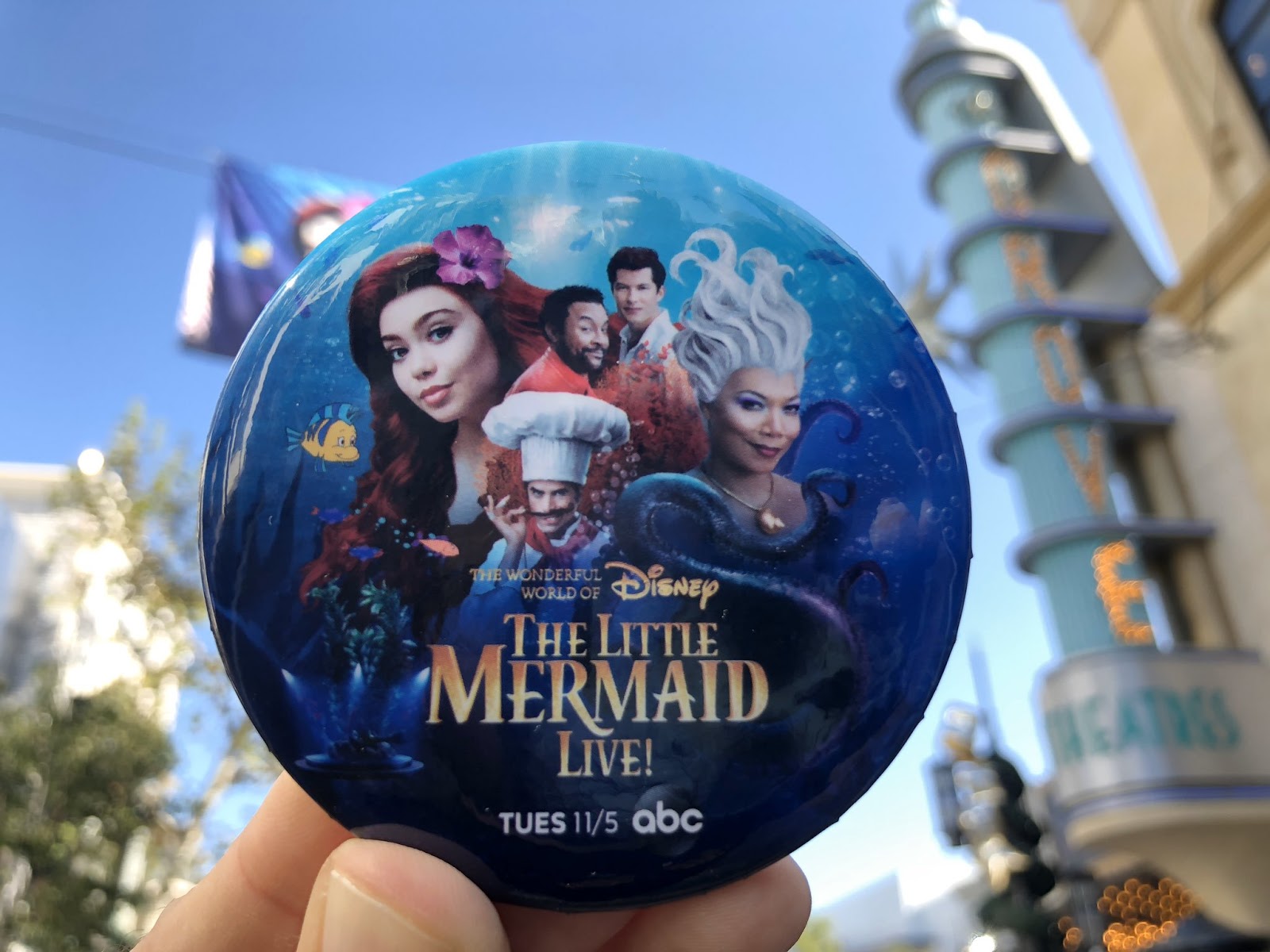 Visitors to The Grove could spot The Little Mermaid Ariel herself diving into the waters of the mall’s gorgeous dancing fountain, Sebastian the singing crab’s claw coming up through the sidewalk to grab a lamppost, and the evil sea witch Ursula’s tentacles clambering over the top of a second-floor railing with her famous song “Poor Unfortunate Souls” piping through nearby speakers. Then, shoppers could approach a friendly member of the ABC promotional team to claim a complimentary button for The Little Mermaid LIVE! For those in the Los Angeles area who haven’t yet had the chance to visit the memorable displays, they will continue to be hosted at The Grove through tomorrow, November 5.