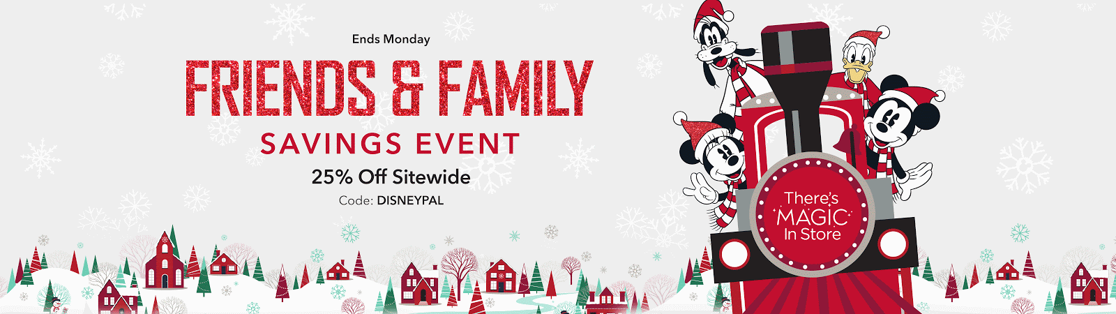 Gift bags, and ribbons, and silvery tinsel... now that the holiday season has kicked off at Disney Parks, shopDisney is spreading the cheer too! Guests can enjoy 25% off their entire purchase sitewide on shopDisney.com with the code DISNEYPAL. The Friends and Family Savings Event is going on right now until Monday, November 11. This is the perfect time to pile up on stocking stuffers and gifts for every Disney fan on your shopping list.