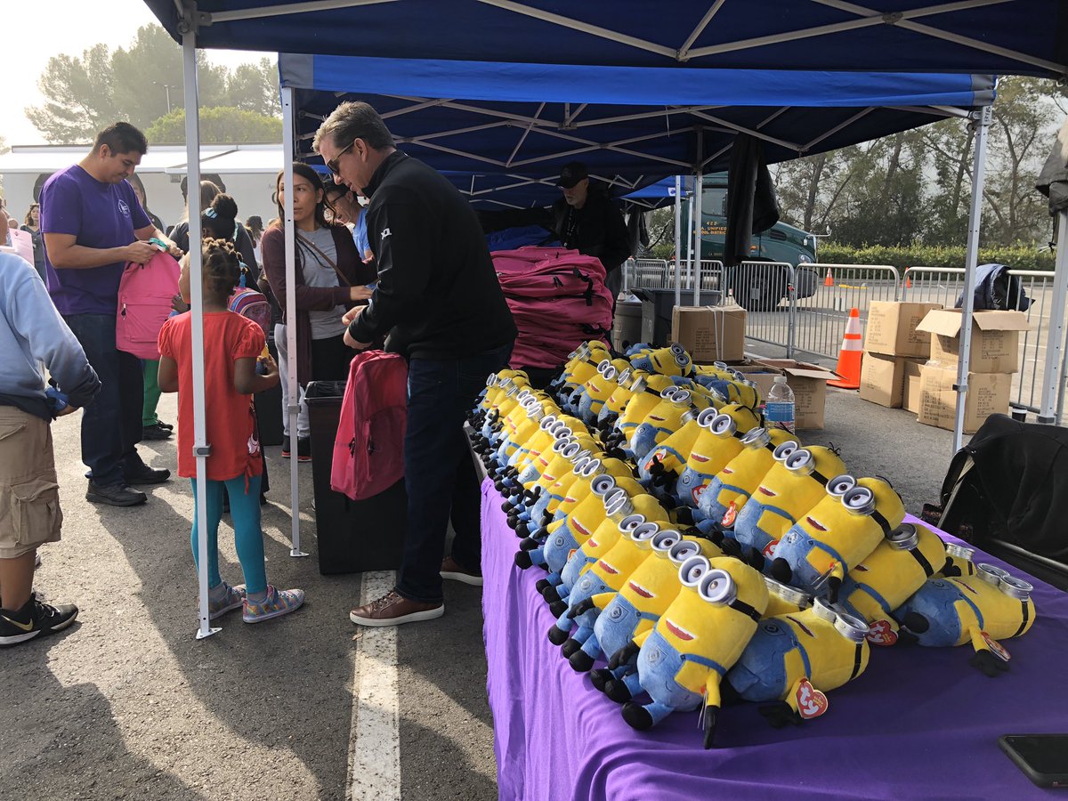 At Universal Studios Hollywood’s “Day of Giving” 2019, participating children received a selection of new clothing and school supplies like books, fruit, shoes, backpacks, jackets, and even bonus Minion plush dolls, and then they had the opportunity to visit the theme park known as “The Entertainment Capital of Los Angeles”-- including stops at the Wizarding World of Harry Potter, Despicable Me’s Super Silly Fun Land, and an informative behind-the-scenes Studio Tour of the iconic Universal Studios backlot.
