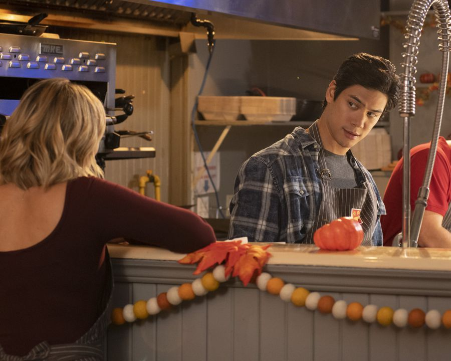 Like the best Christmas films, one thing Turkey Drop does exceptionally well is making the setting feel like Thanksgiving. In a typical holiday film, the home decor subliminally brings the colors into every shot and in this film, you’ll notice lots of yellow, orange, and cranberry colors. Even a scene inside a grocery store yields lots of fall accents without any sign of Christmas around the corner.