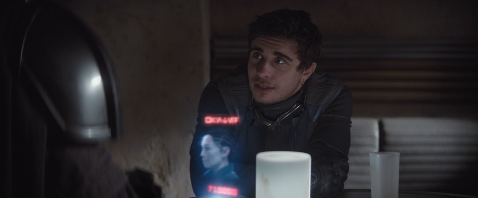 Here, Mando is looking for work outside the Bounty Hunters Guild (since he kind of burned that bridge a couple episodes ago) but stumbles across a newbie hunter called Toro Calican, played by Jake Cannavale of Nurse Jackie. I didn’t think Cannavale turned in the best performance in this episode, but he’s the real-life son of series creator Jon Favreau’s buddy-- and Chef costar-- Bobby Cannavale, so he must have been doing the guy a favor. Anyway, Calican wants to join the guild, and he needs the Mandalorian’s help to catch the target that will grant him entry: Fennec Shand, an elite mercenary played by Ming-Na Wen of Mulan and Agents of S.H.I.E.L.D. fame.