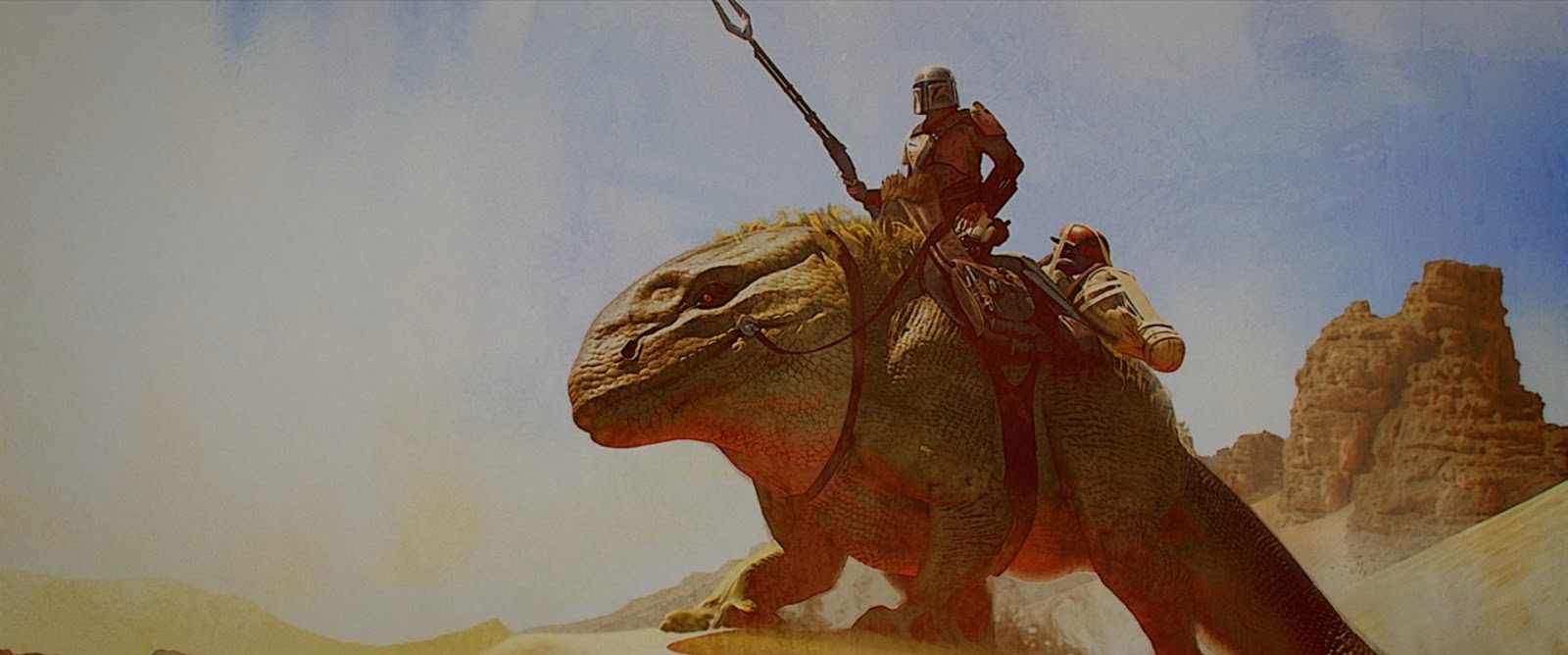 The two travel out past the Dune Sea on speeder bikes, cross paths with some Tusken Raiders, and I was half expecting them to come upon the wreckage of Jabba’s Sail Barge, but instead they enter into a sniper stand-off with Shand in the desert, wait out the night True Grit-style, and then spring a flash-charge attack that ends with Shand captured but one of the speeder bikes destroyed. Naturally where it goes from there is with the Mandalorian betrayed by Calican after he learns about the events on Nevarro (where Mando shot up the guild and escaped with Baby Yoda) and our hero having to ride back through the desert on Dewback. The final confrontation in Docking Bay 25-- I guess they had enough restraint not to use 94-- sees Calican dead and The Child reunited with his protector once again.