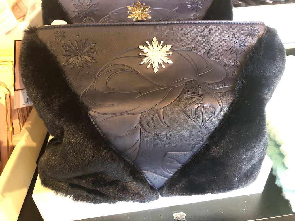 This dark blue handbag features Elsa, and is accented by snowflakes and fuzzy sides—a great way to keep all of your daily essentials in one place for wherever your journeys take you.