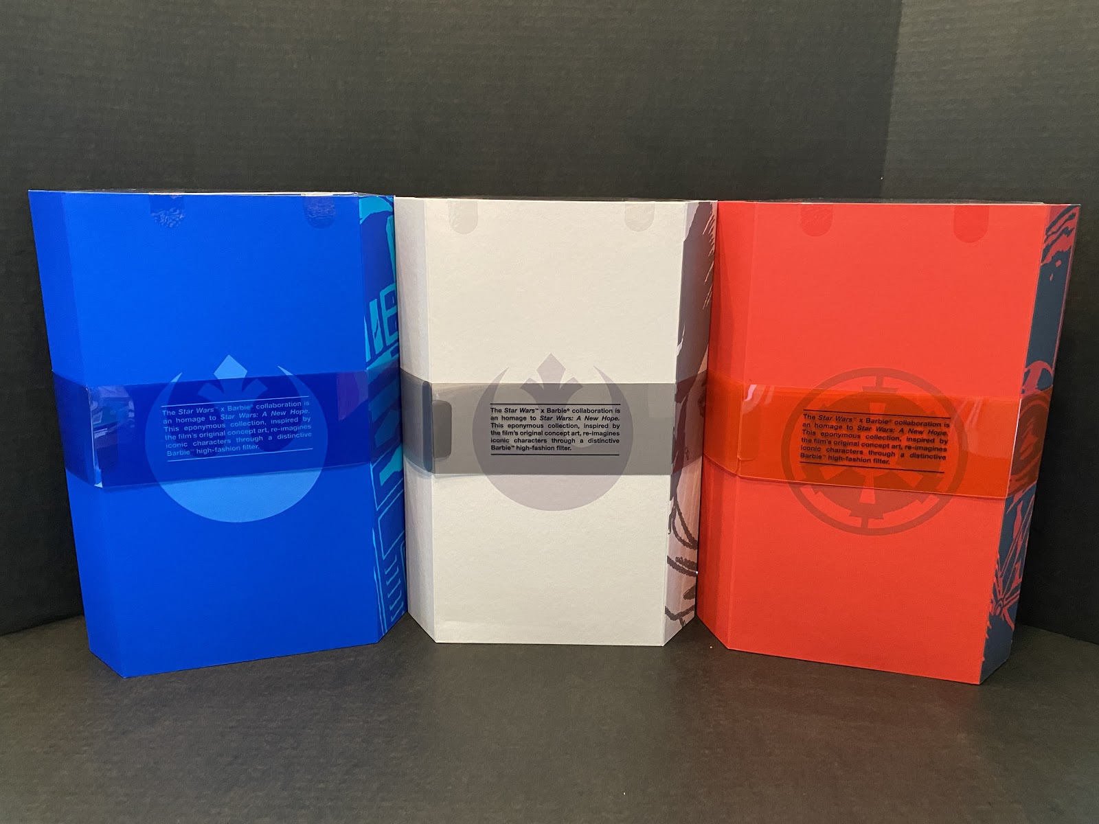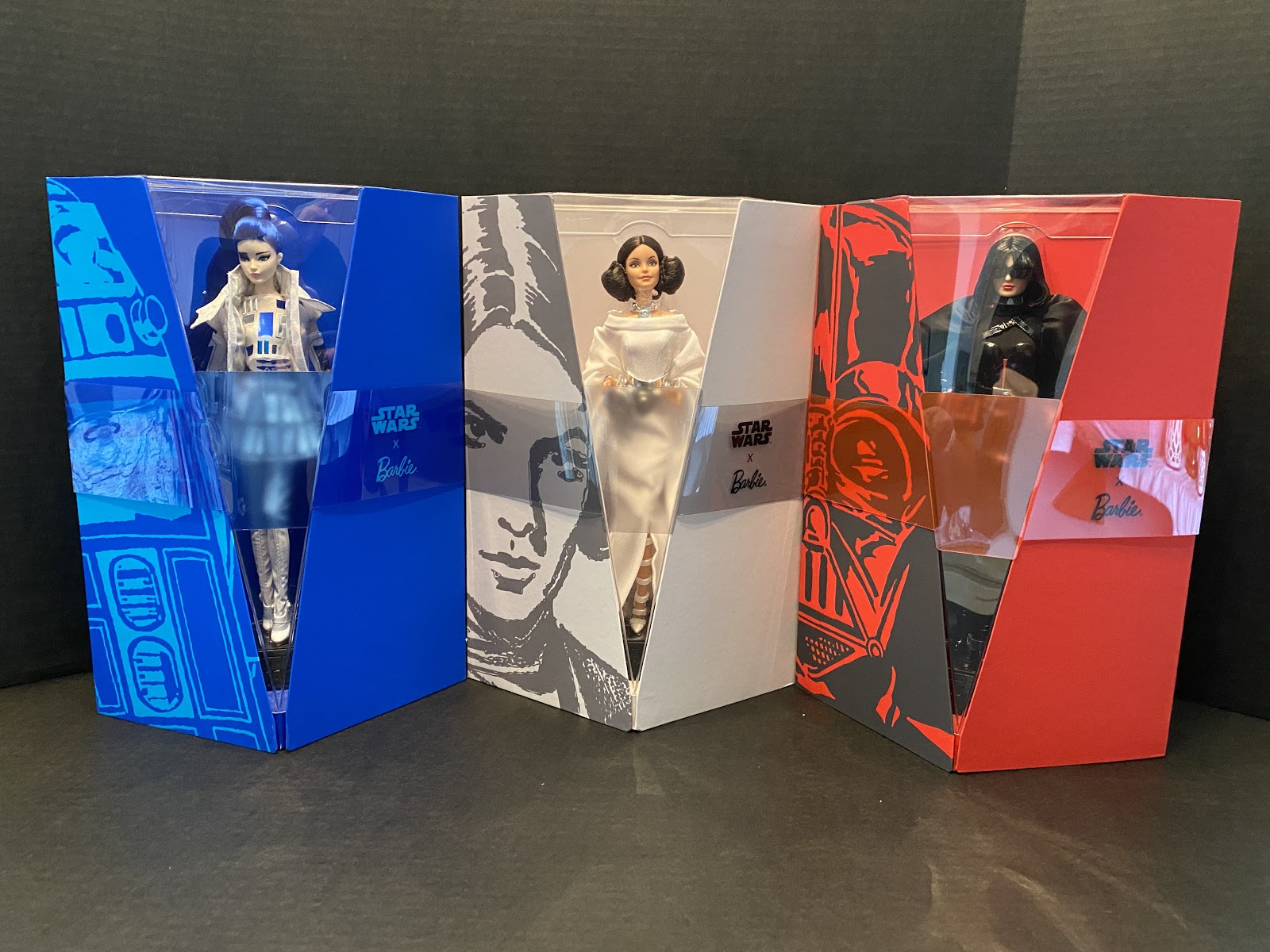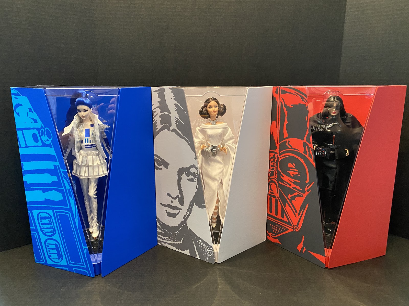 Darth Vader, Princess Leia, and R2-D2 become sources of inspiration for three high fashion looks for Barbie. Each doll retails for $100 with a maximum worldwide edition cap on the number of dolls Mattel will produce, each around 20,000 units. The diamond packaging opens up to allow multi-angle views of each doll in addition to concept art of the character and doll side-by-side. In this review, we’ll go into the level of detail for each doll with large photo galleries to highlight the features of each one. All of the dolls come with a themed base and a certificate of authenticity.