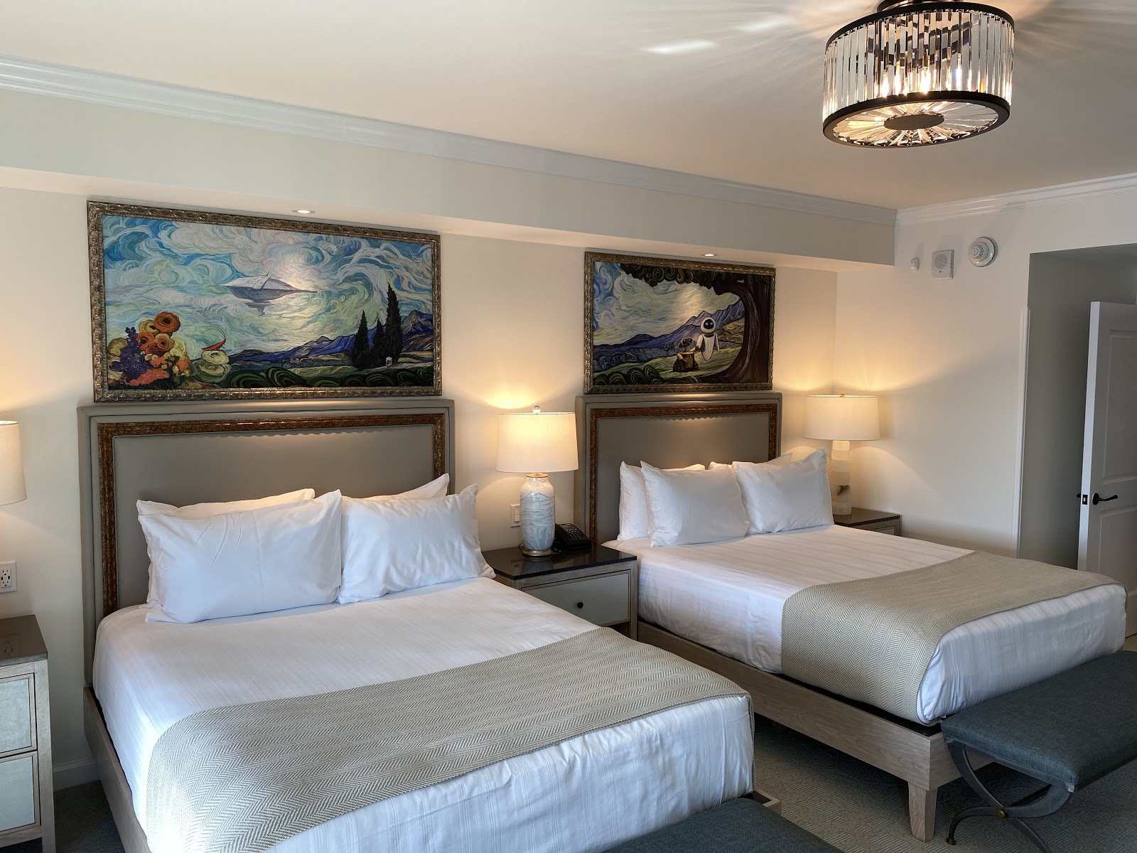This is, of course, a Disney Resort, so the art can’t just be hung on the wall — there have to be some small hidden touches like the Fab 5 hidden in the carpet at the elevator landings.